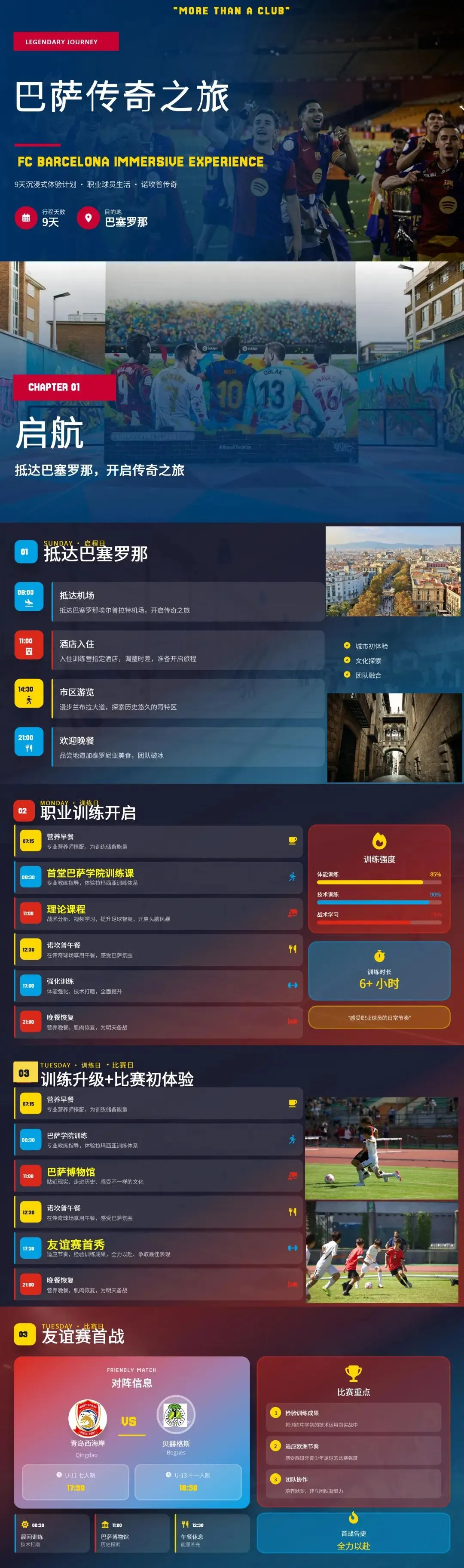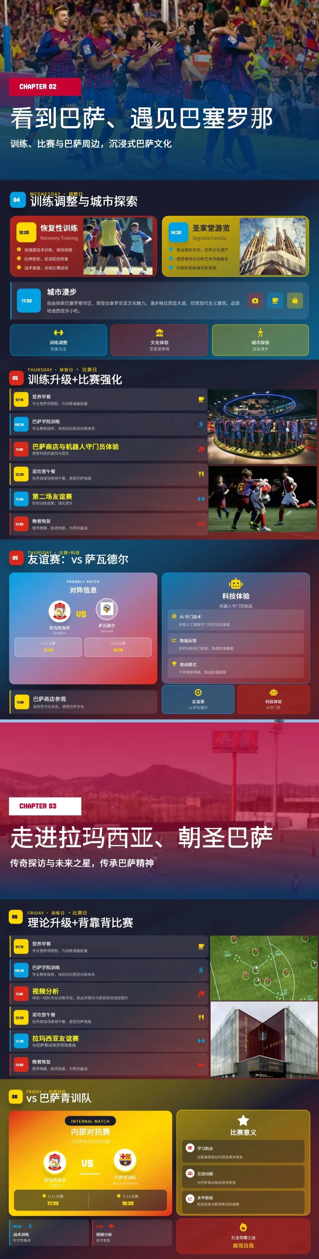 训练之余,小将们将走进巴塞罗那的城市,感受建筑艺术的震撼,在加泰罗尼亚广场触摸城市脉搏,探访诺坎普球场。“足球 + 文化” 的双轨行程,让小将们在跨文化交流中拓宽格局,为未来职业生涯埋下更深厚的积淀。