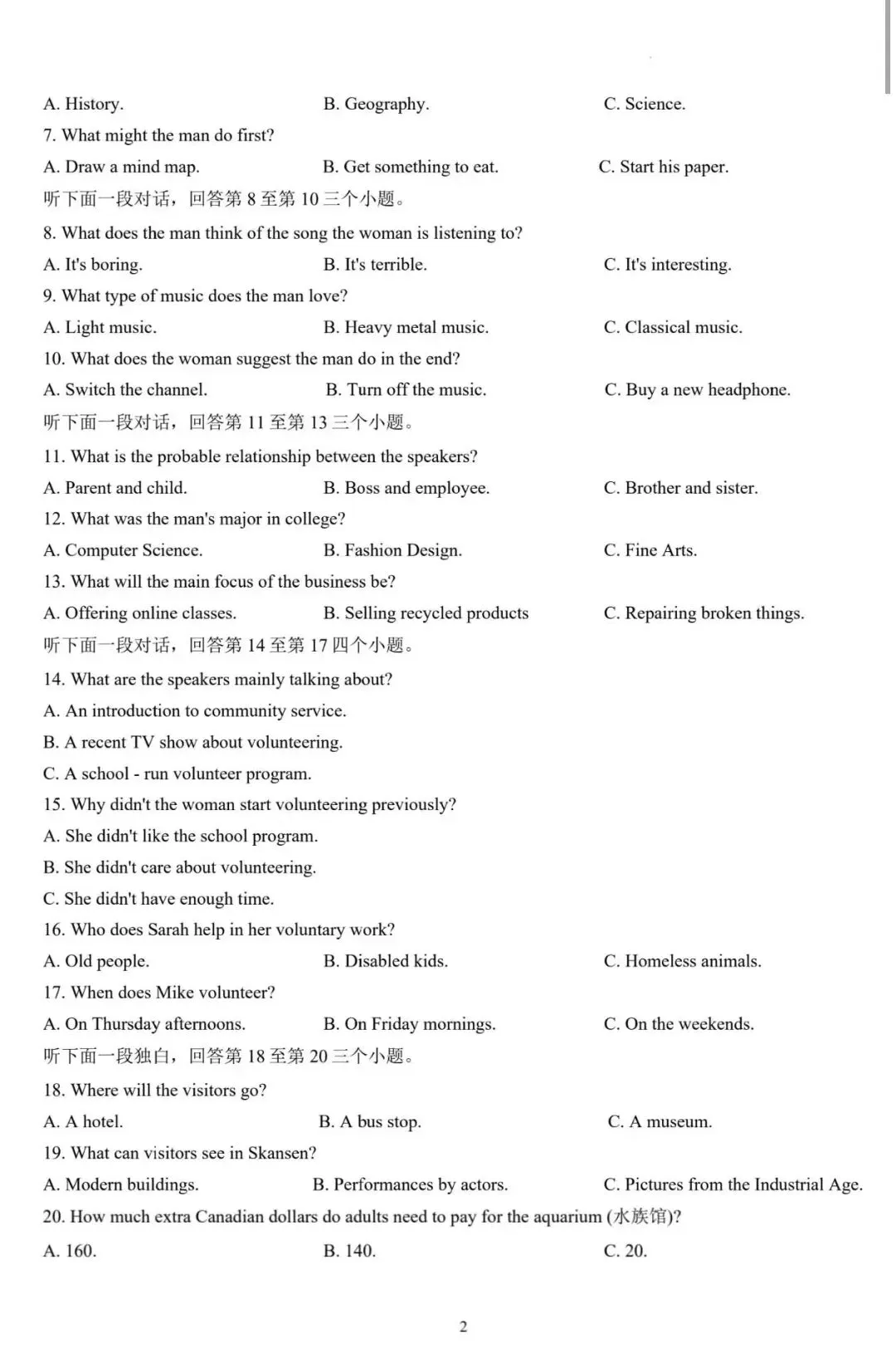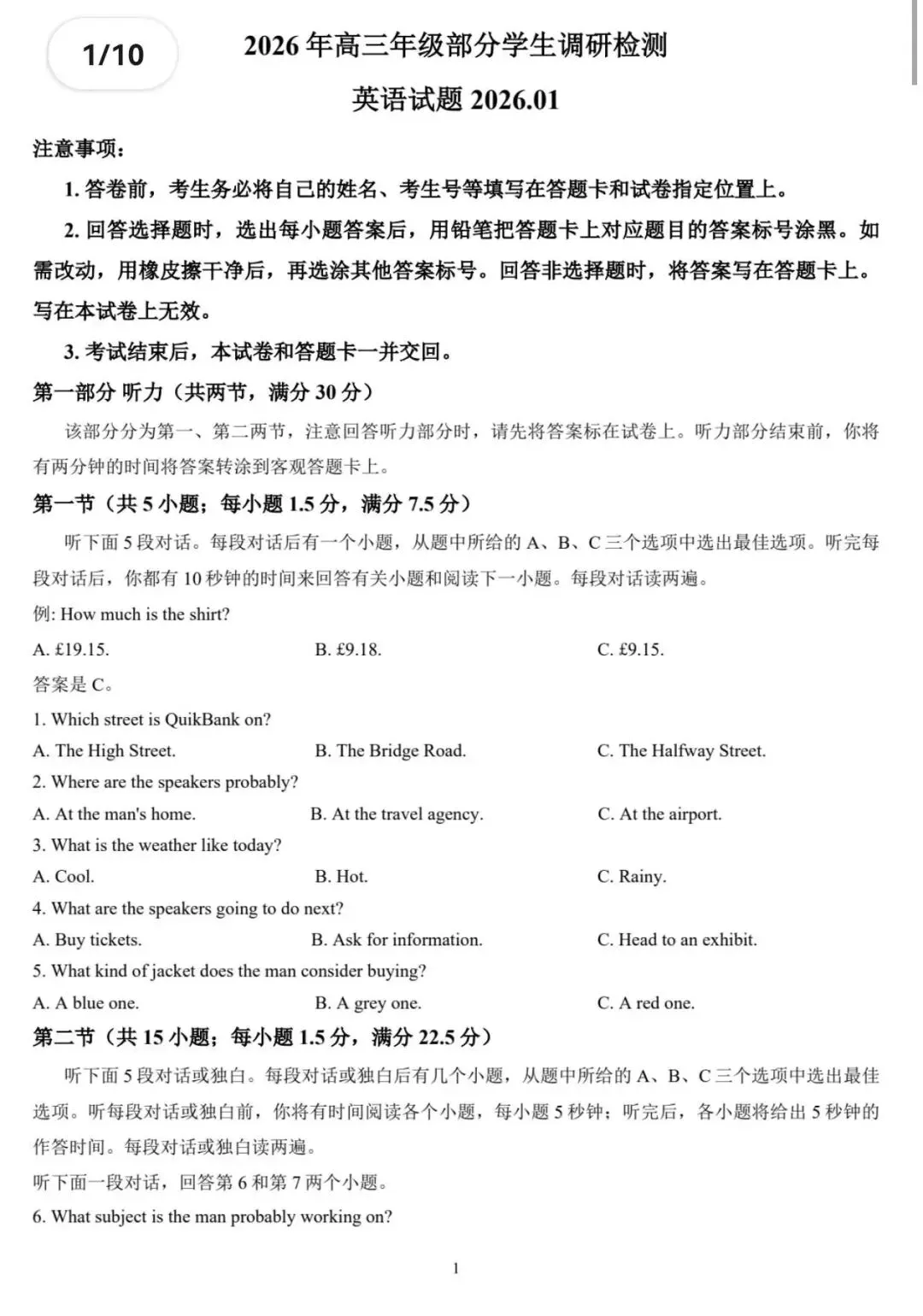 温馨提示:需要试卷高清打印版和听力音频的,点个赞去评论区自行复制粘贴到网