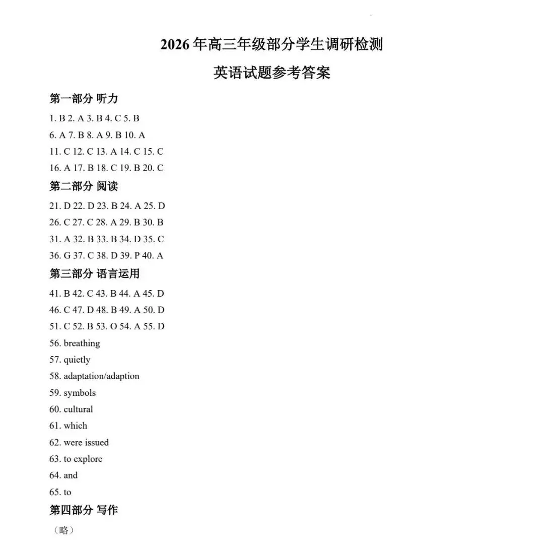 优质试卷推荐:2026年青岛市高三年级1月期末调研试题英语试卷(试卷+答案+听力)