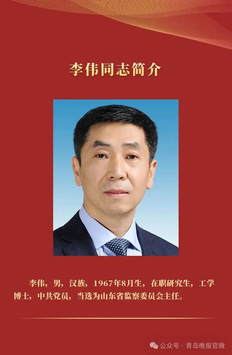 山东省第十四届人民代表大会第四次会议圆满完成各项议程,1月31日下午在济南胜利闭幕。大会选举李伟为山东省监察委员会主任。