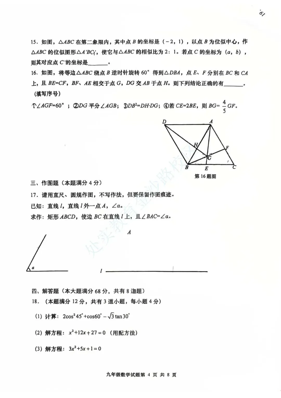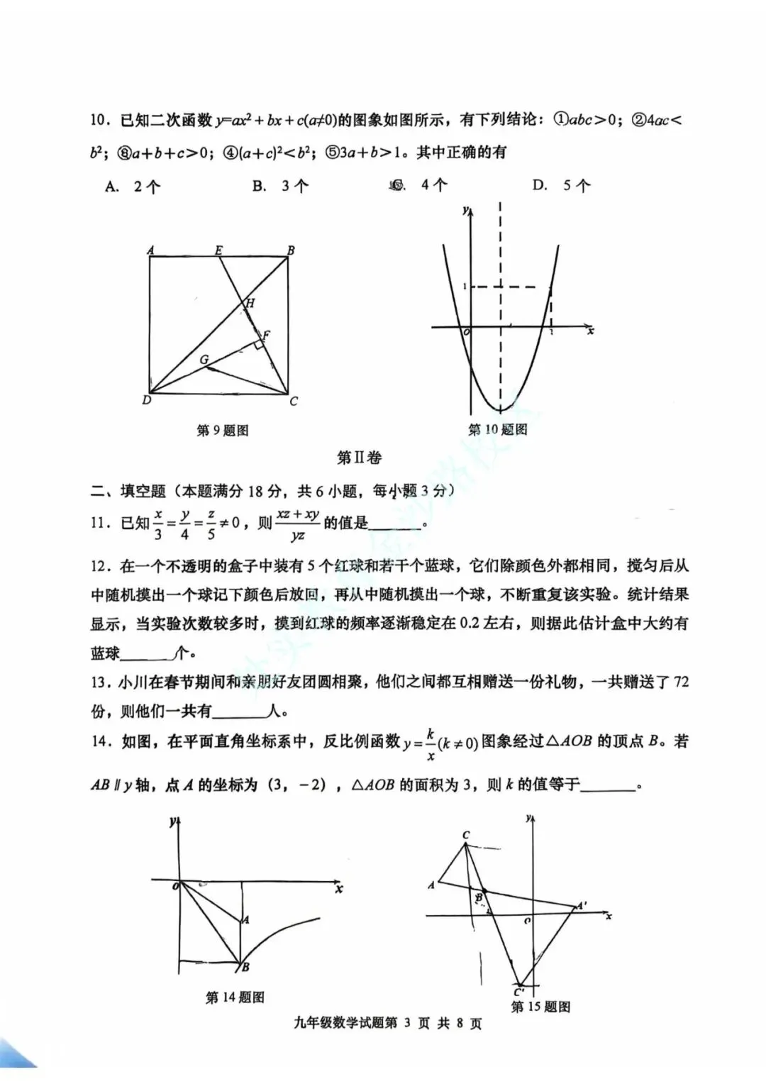 >青岛市南区2025-2026学年度第一学期期末九年级数学试卷(期末真题)
