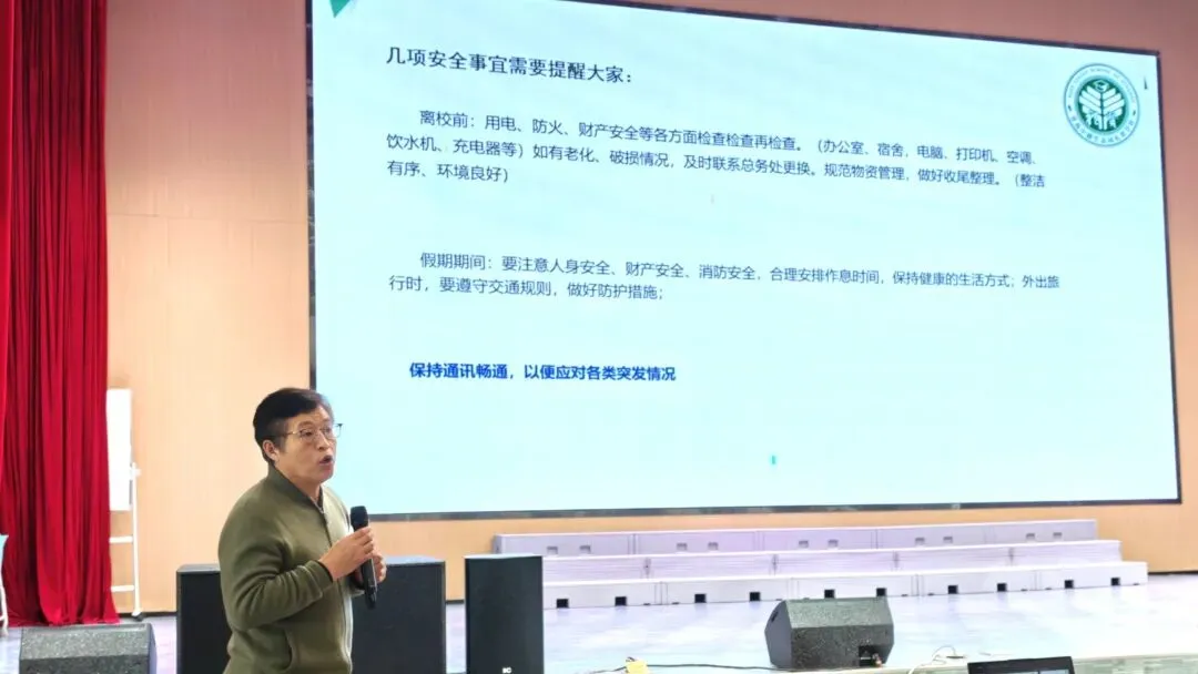 前行不忘来路,收获亦须耕耘。会议最后,朱培波副校长就假期安排、师德师风、安全健康、教学准备与教师培训学习等内容做了清晰嘱托。