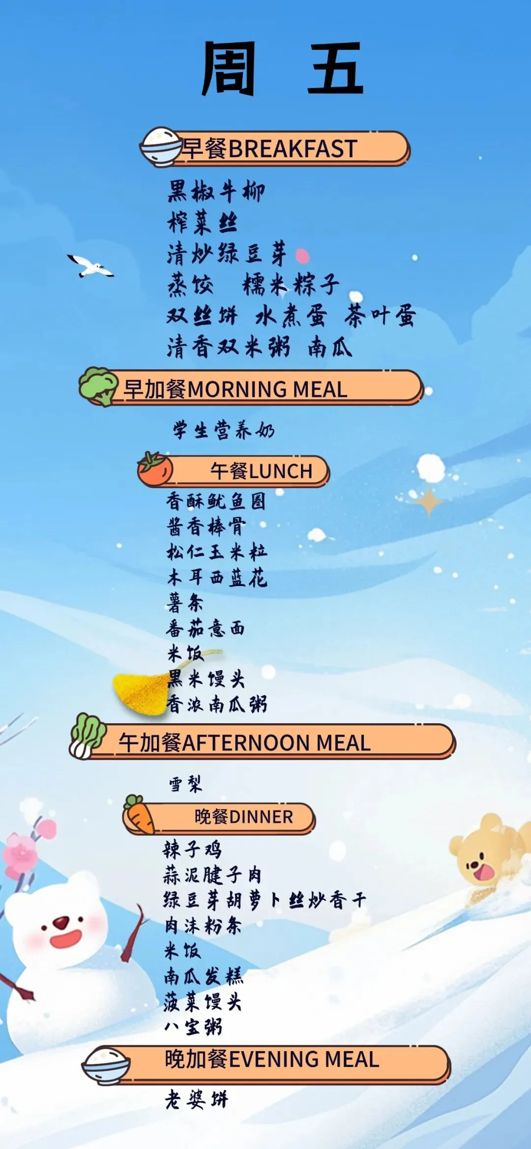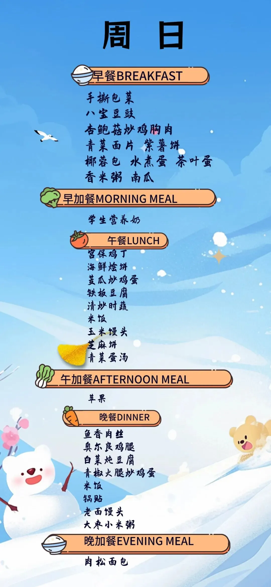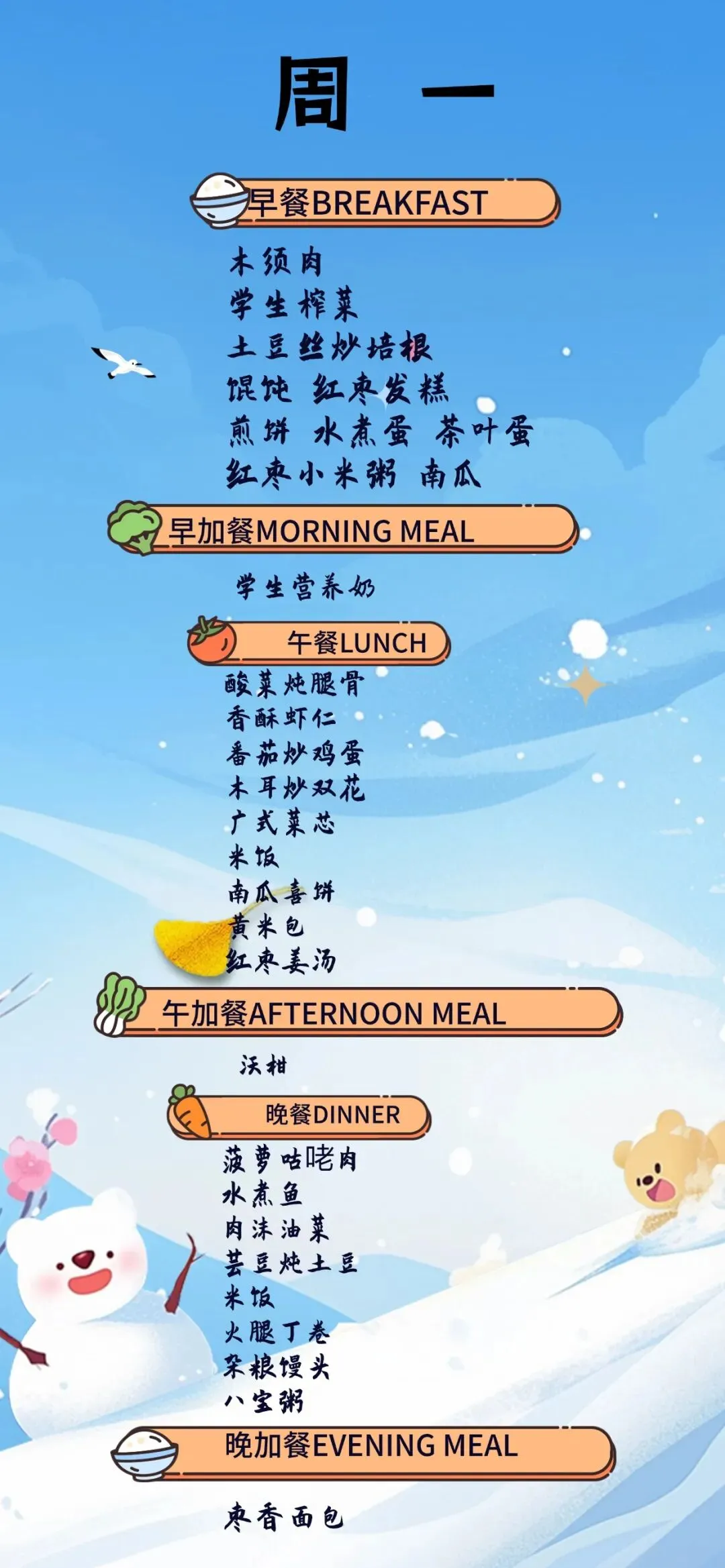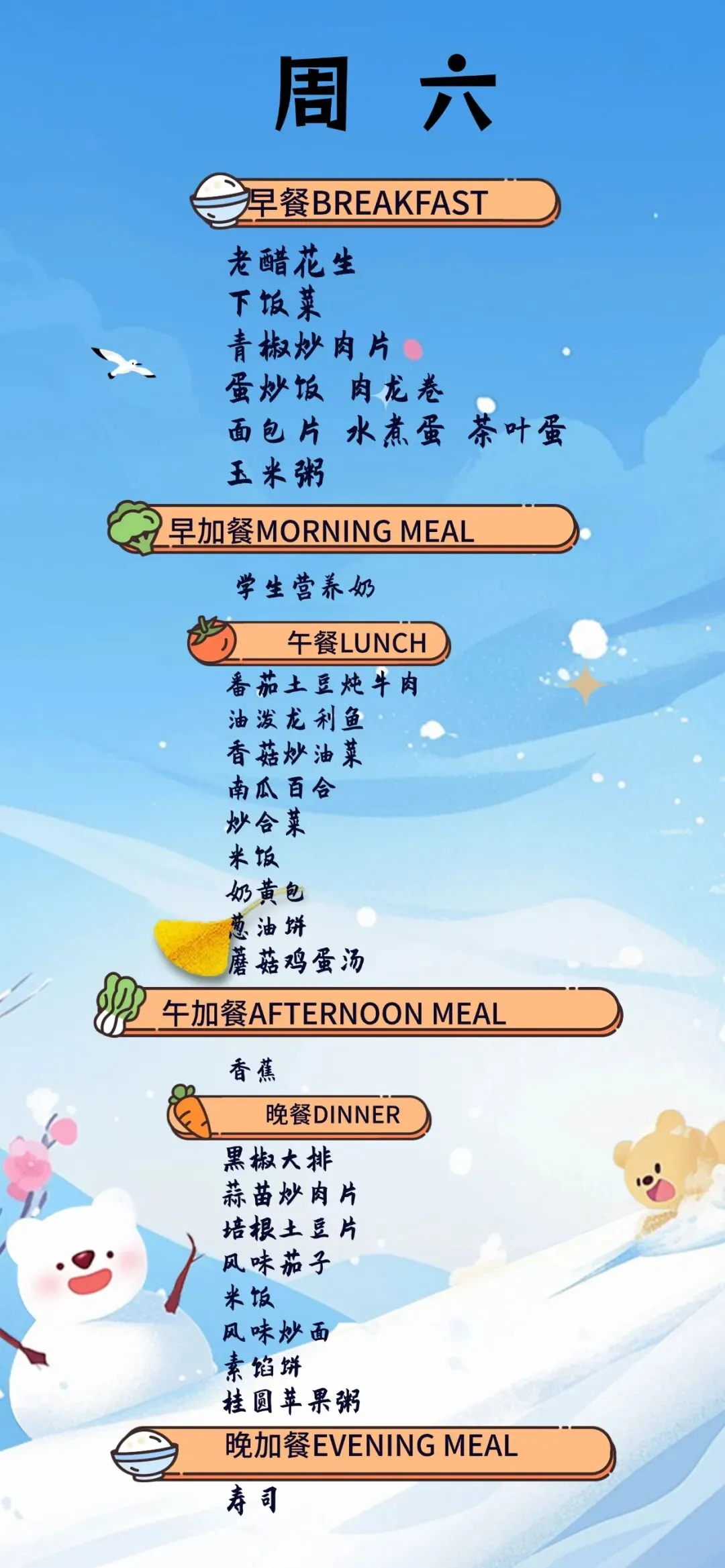 【青岛古镇口海军中学一周食谱】