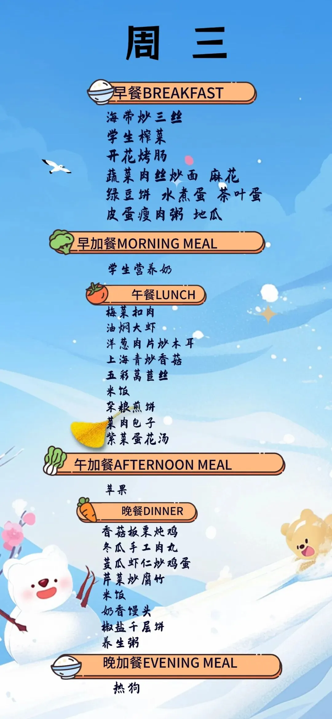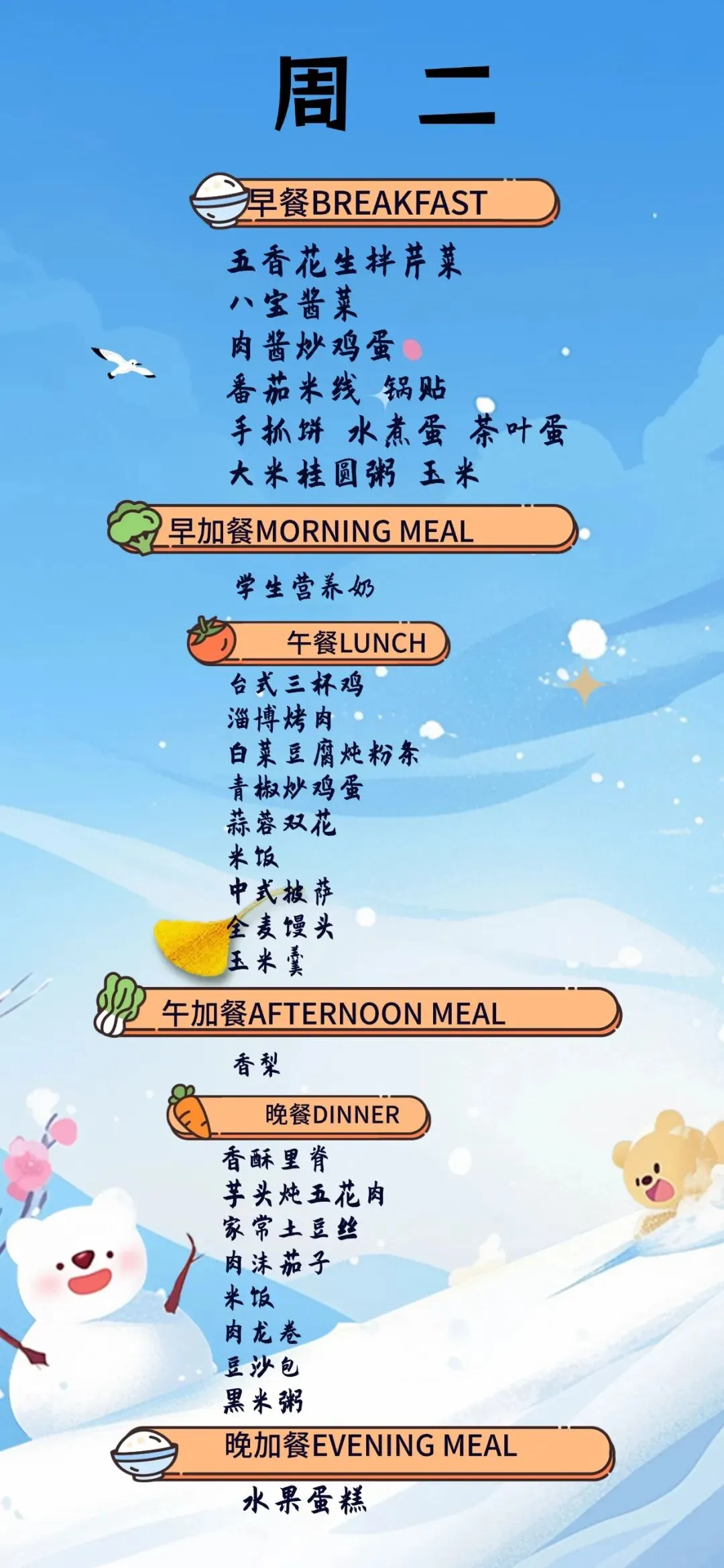 >【海中·食谱】青岛古镇口海军中学一周食谱(2026.2.2-2026.2.8)