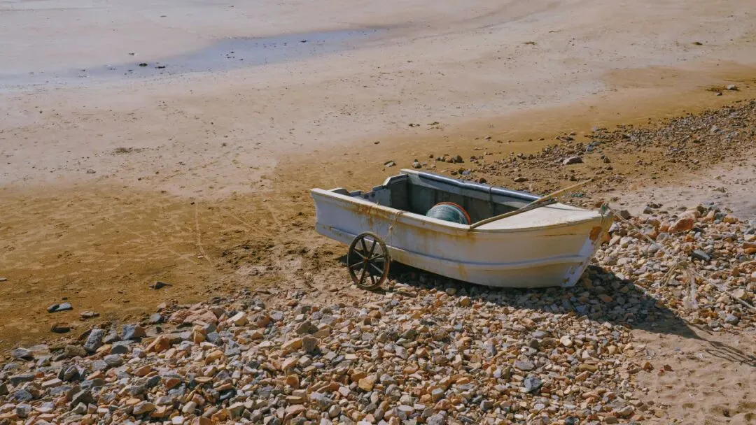 海平面在秋季呈现出一种克制的灰蓝色。潮汐的节奏明显放缓,每一次涌浪都显得疲惫而漫长。沙滩上,一只被遗忘的小船记录着时间的痕迹,盐霜在船板上凝结成细密的白色晶体。空气湿度降至年度最低点,干燥的季风不断带走海面蒸发的水汽,海天交界线逐渐模糊。