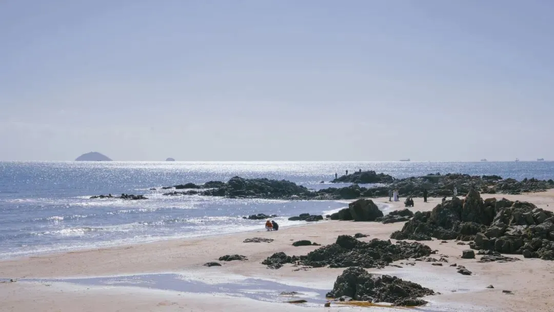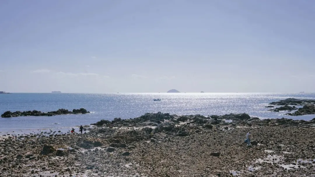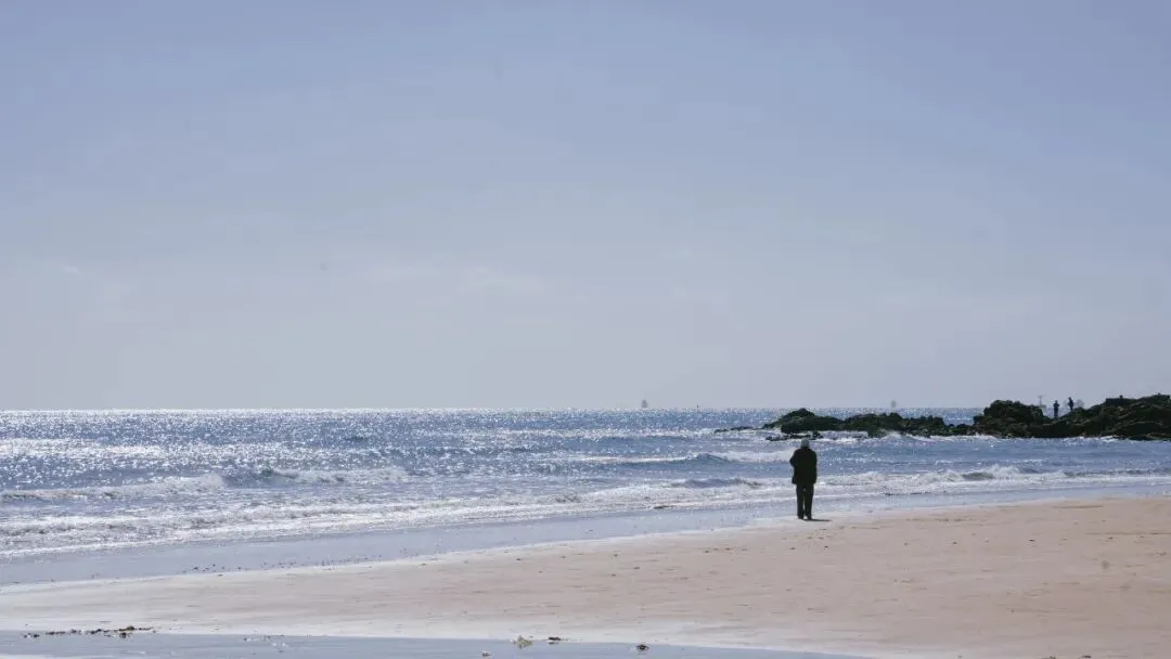 拾贝者的身影渐行渐远,他的足迹在涨潮前只会留存28分钟。