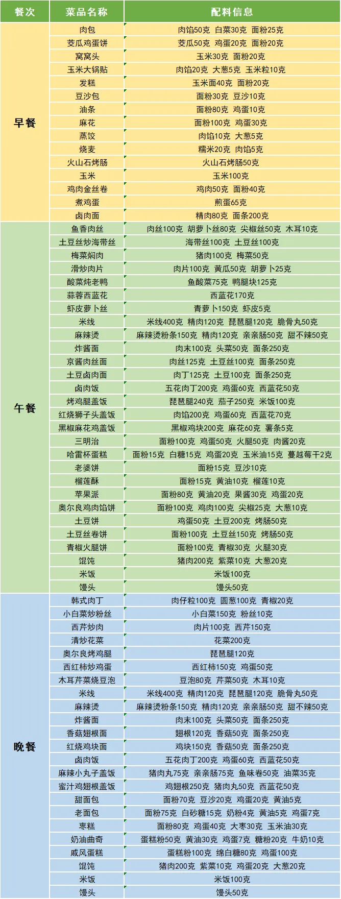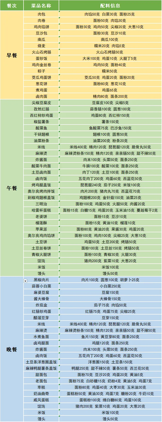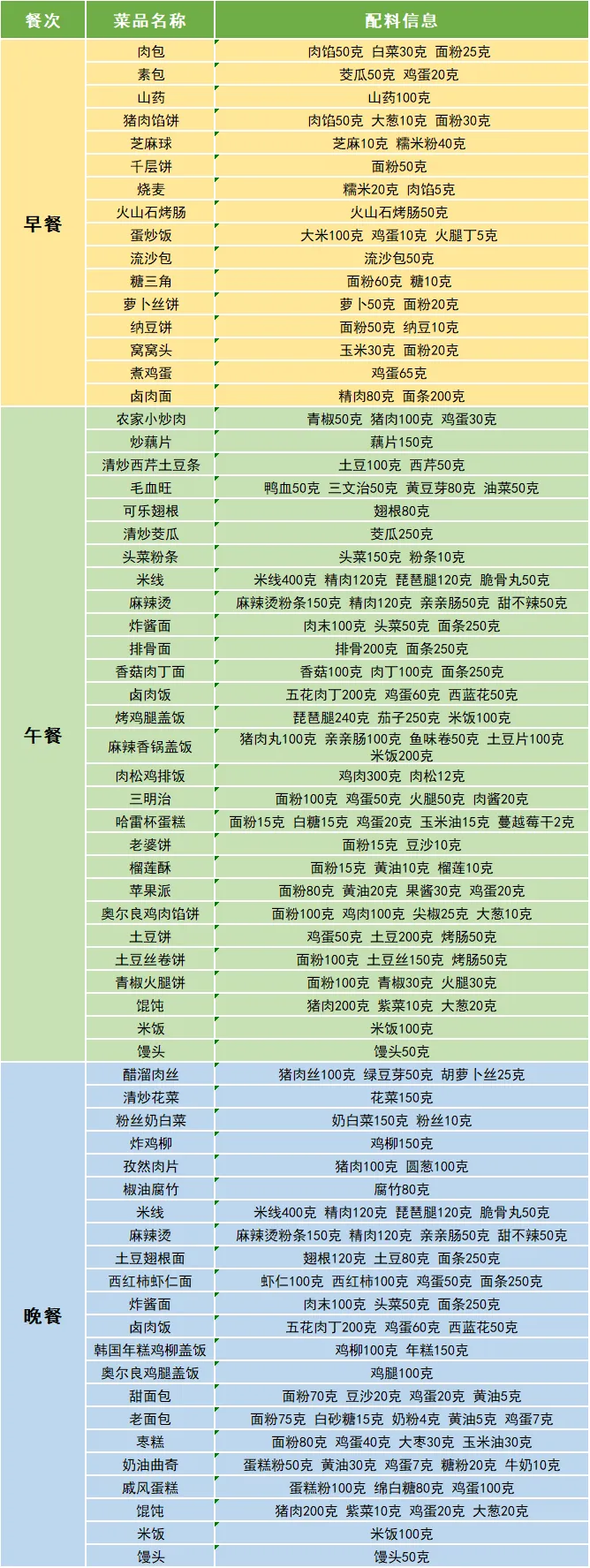 注: 以上菜品会根据原料组织情况或其它不可预见因素可能会做调整,敬请谅解!