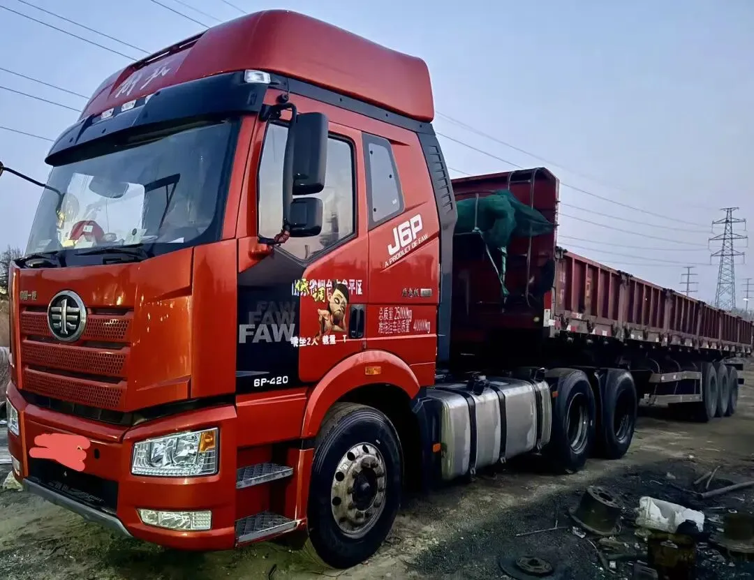 出售2019年10月解放J6P,420马力,带一整年交强险,商业险还有三个月,车况原版,干活中车,刚保养完毕,回家不用花一分钱。挂车是19年11月,带侧翻,车底平,现在便宜出售电话13884652000