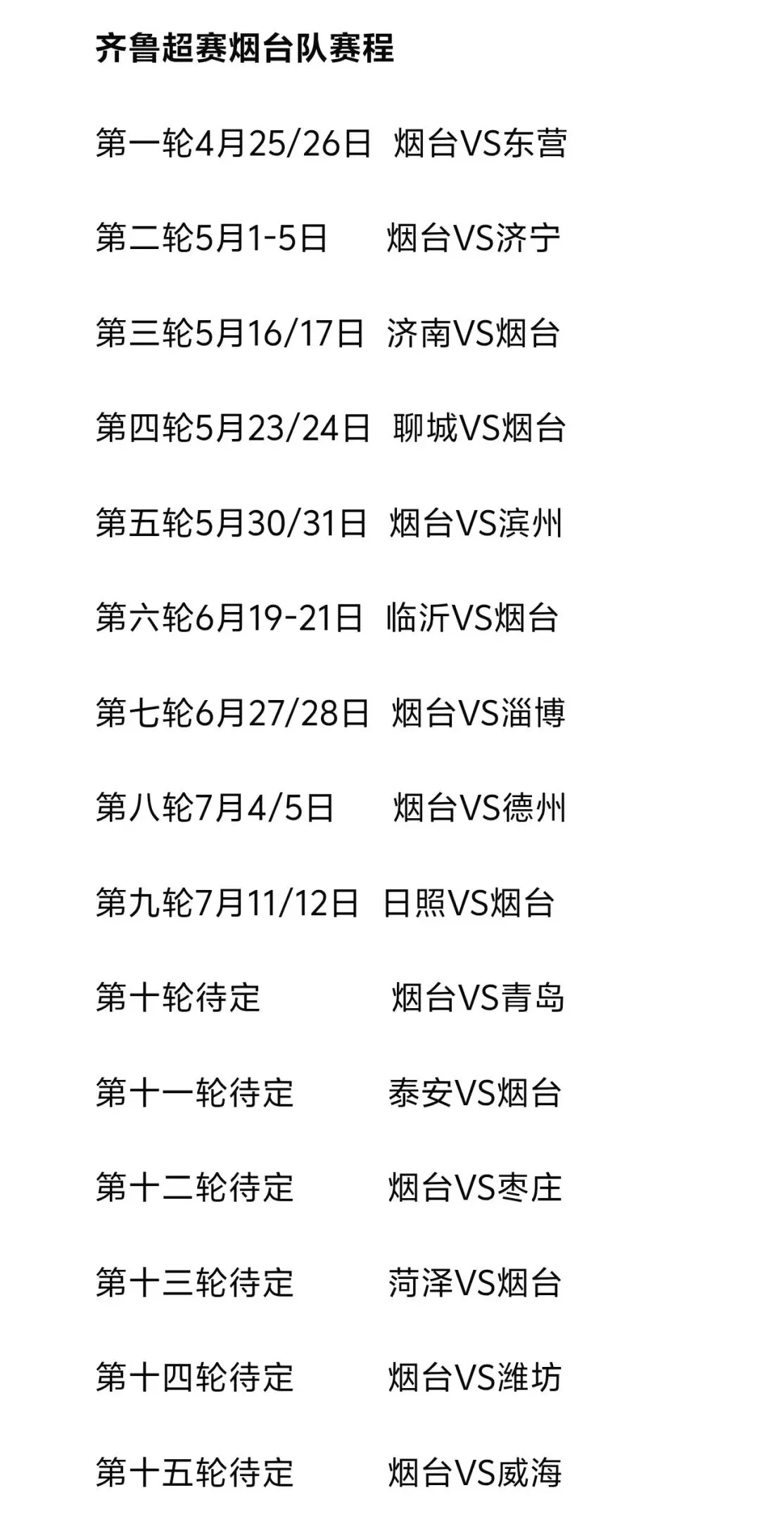 #齐鲁超赛烟台队赛程出炉,烟台队获九个主场。