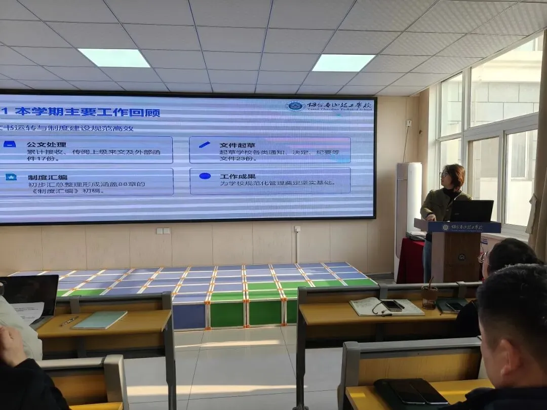 随后,学校各部门负责人依次就本学年度部门工作进行了总结汇报。各部门紧紧围绕学校有效发展根本任务,系统梳理了在招生宣传、教育教学、学生管理、服务保障等各方面取得的进展与实效,分析了当前面临的问题与挑战,并提出下一阶段工作思路。