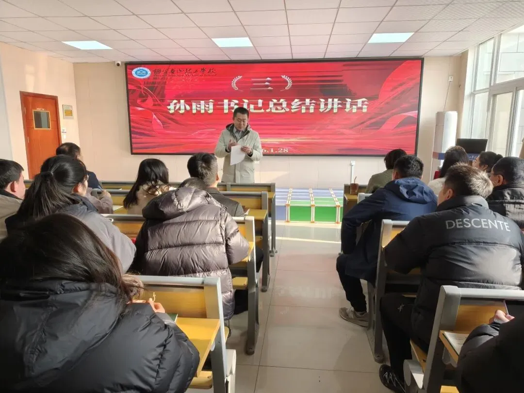 会议最后,孙雨书记作总结讲话。他强调,全体教职工要坚定信心、再接再厉,坚持稳中求进工作总基调,以提升人才培养质量为核心,深化改革创新,加强师资队伍建设,夯实办学基础。要大力弘扬实干精神,强化责任担当,以更加奋发有为的姿态,共同书写学校高质量发展新篇章。