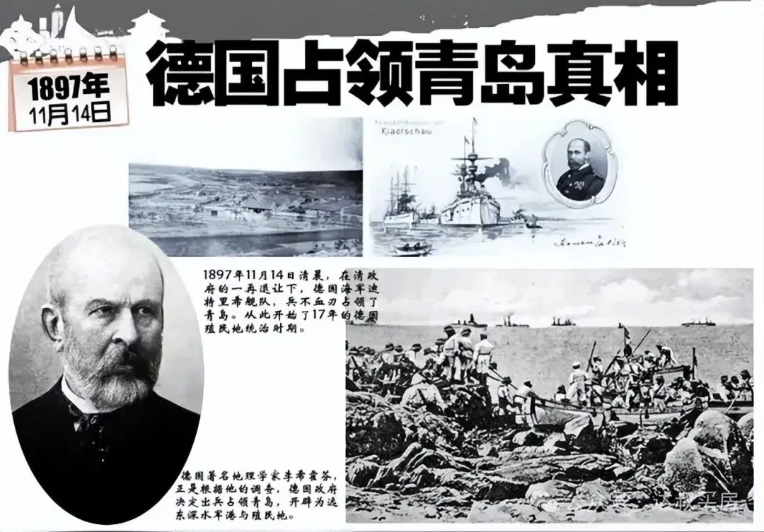 德国在十九世纪末的远东寻找立足点。经过周密勘察,胶州湾进入视野。与舟山、香港相似,青岛当时远离清廷重心,冲突风险小。其半封闭式海湾面积广阔,水深且冬季不冻,是天然良港的胚子。德国地理学家李希霍芬的报告起了关键作用。