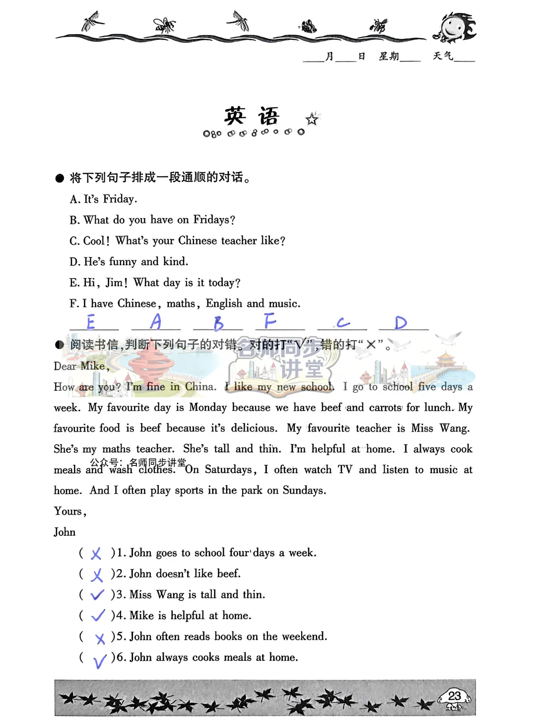 同学们一定要独立完成,千万不要直接抄答案哟