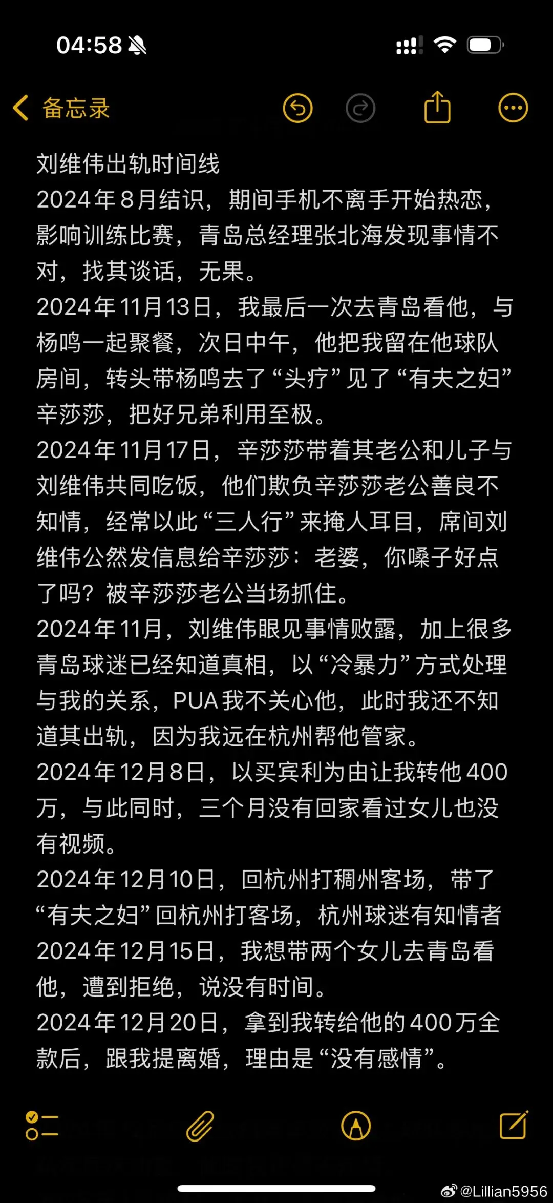 12月20日,在收到400万元转账后,刘维伟提出了离婚声称双方已无感情基础。然而,他的内心并未真正悔过,而是在2024年底公然带着辛某出入球队,而李艳对此一无所知。