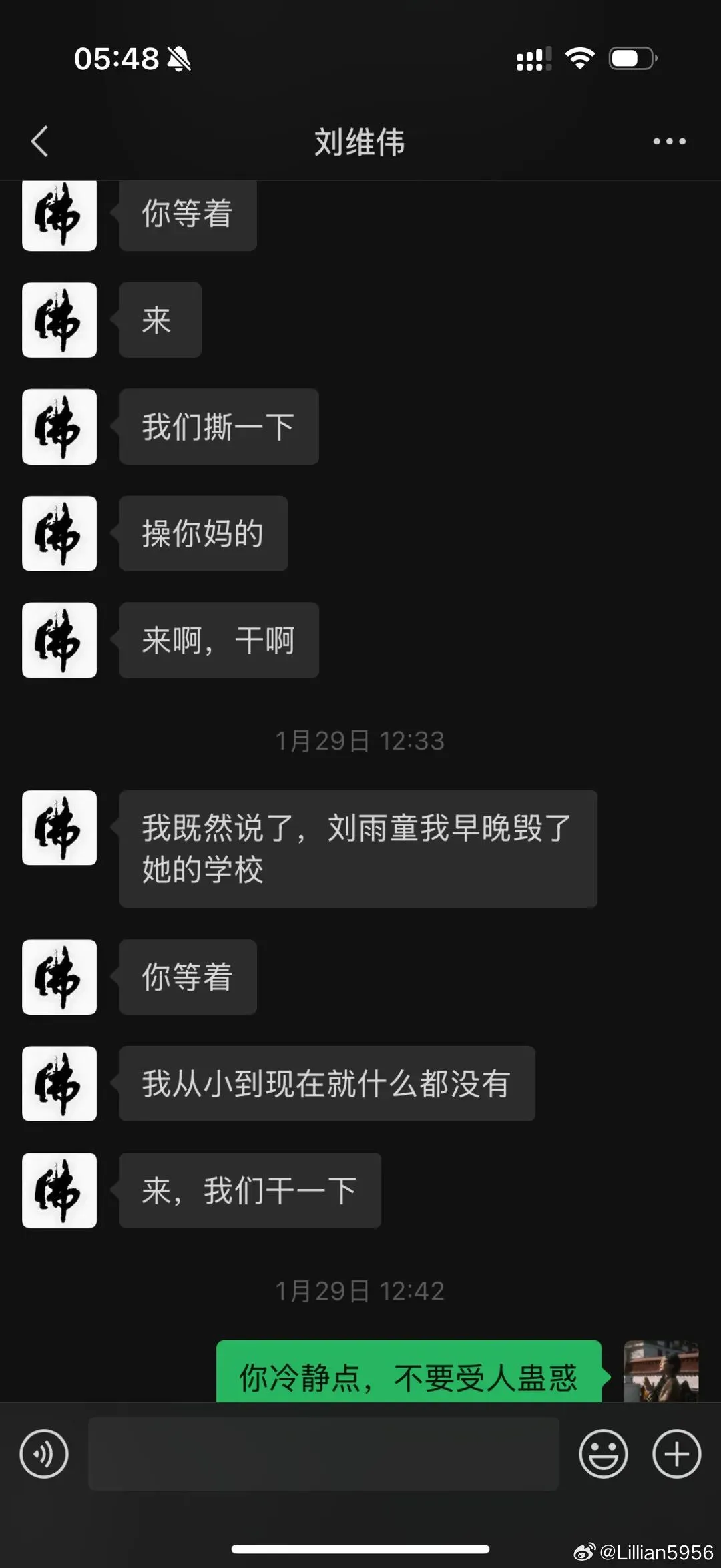 自2025年2月至今,李艳一直在积极寻求帮助,希望刘维伟能够迷途知返,离开这个有夫之妇。然而,刘维伟似乎并未领会李艳的良苦用心,执迷不悟且毫无悔改之意。在夫妻双方的聊天记录中,刘维伟对李艳说道:“你等着,来,我们撕一下”,同时还威胁女儿刘雨童“早晚毁了她的学校”。最后,李艳还晒出了自己与青岛男篮总经理张北海的聊天记录,后者表示对刘维伟的妻子很愧疚,自己一直知道刘维伟的行为并向他提出过指责。