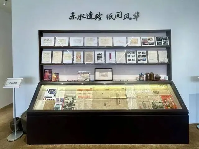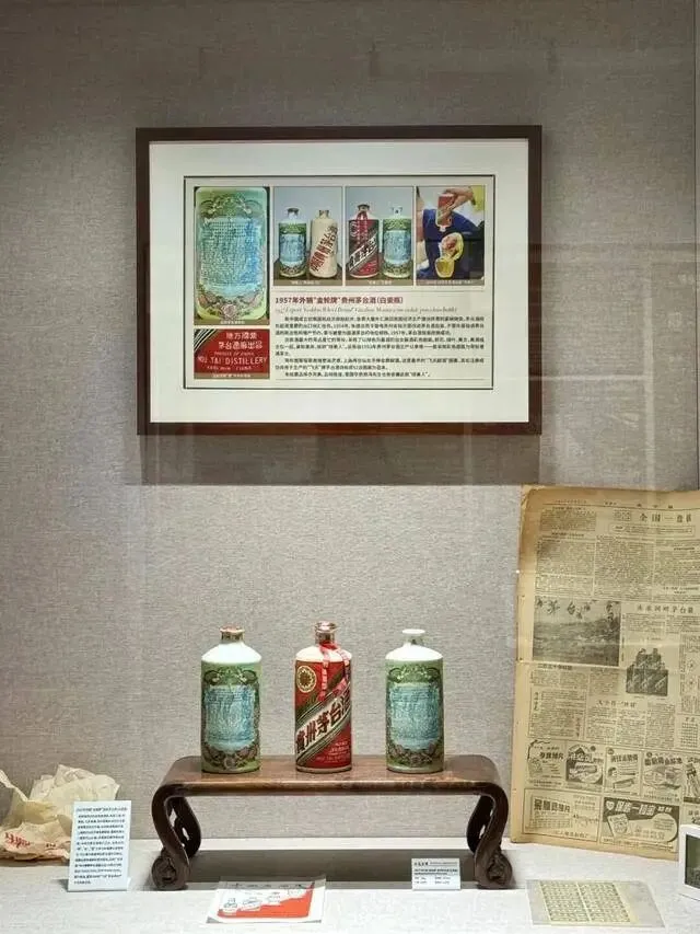 本展区主要摆放了具有时代代表性及重要纪念意义的茅台酒,周边放置票据、书籍、报纸、图片等藏品。