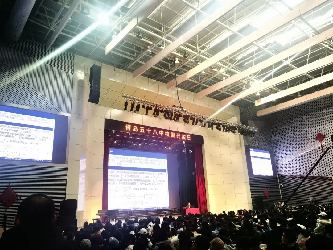 两所学校的开放日活动流程和内容比较相似,都是先介绍学校的基本情况和招生政策,然后老师进行数学、物理、化学等学科的素养提升讲座,最后参观校园并与老师做详细交流,进一步了解详细信息。一中还增加了两名高一学生的分享,以他们自己备考、参考到入学后这半年的学习过程,给各位家长和初中生做了介绍,并给出了一些建议。让学生现身说法,还是更容易引起在场学生的共鸣。预想到人会很多,但没想到会这么多。两校的分享会都安排在体育馆,面积都很大,我们都是提前到场,已经只能坐到最后面了,很多后续赶到的人只能站着听了,足见大家对于青岛头部高中的重视和期盼。学校介绍自然都是亮出自己更多的金字招牌,58中自信满满地强调自己青岛第一的位置,青岛一中也数次强调自己位列前三。高中还是以高考为第一要务,名校录取数据展示自然是最大的利器,过往的数字胜过千言万语。各种特色班也是家长和同学们最为关心的,58中的奇点班,一中的国防教育班等都是大家关注的焦点,自招也成了这两天大家交流的热点话题。两校的沟通会中都有教师提升讲座部分,由老师现场针对一些典型习题进行讲解,很多学生都听得津津有味,很多家长们就都有些懵了。说实话,现在初中的很多习题,我们已经很难应对了。
