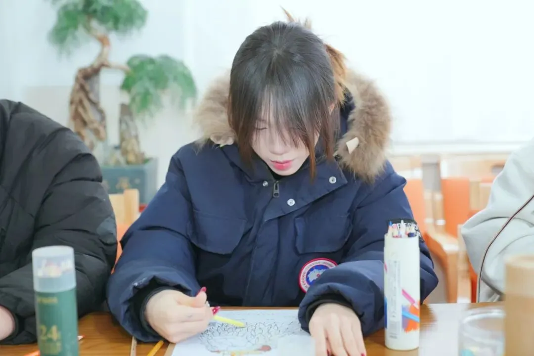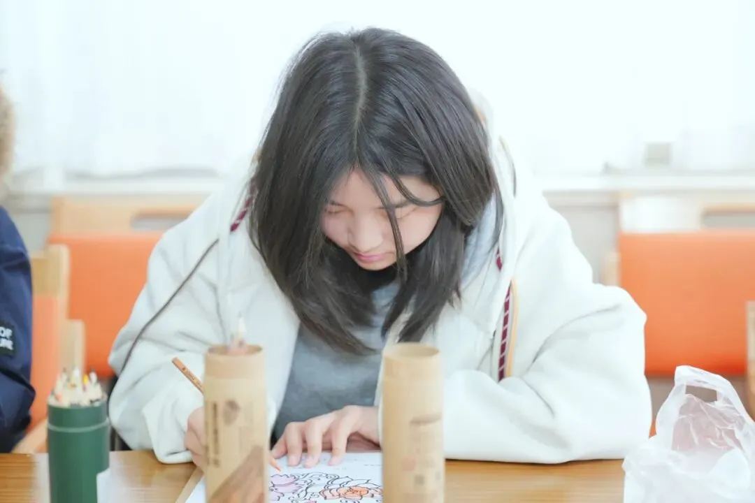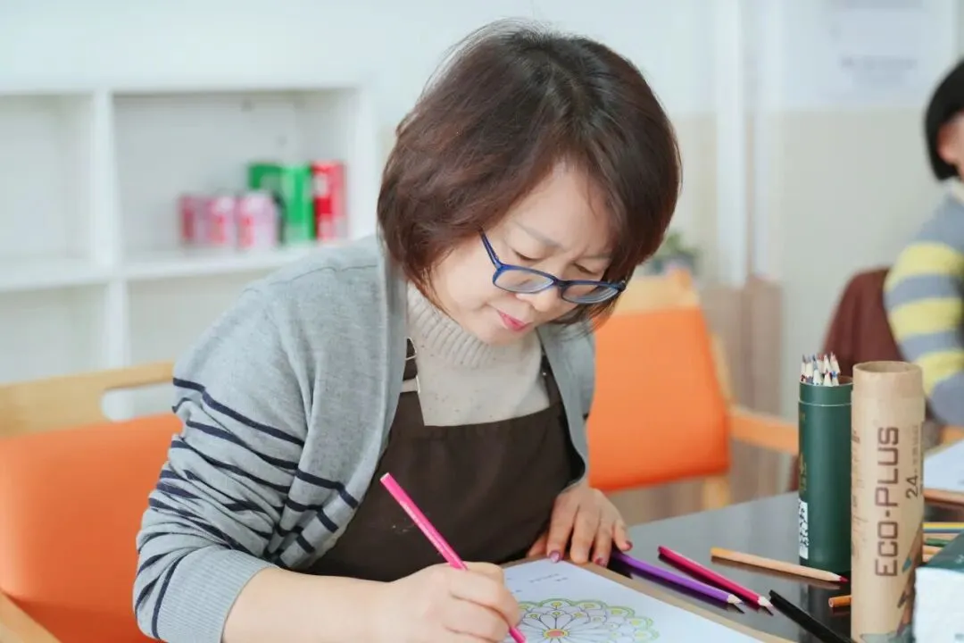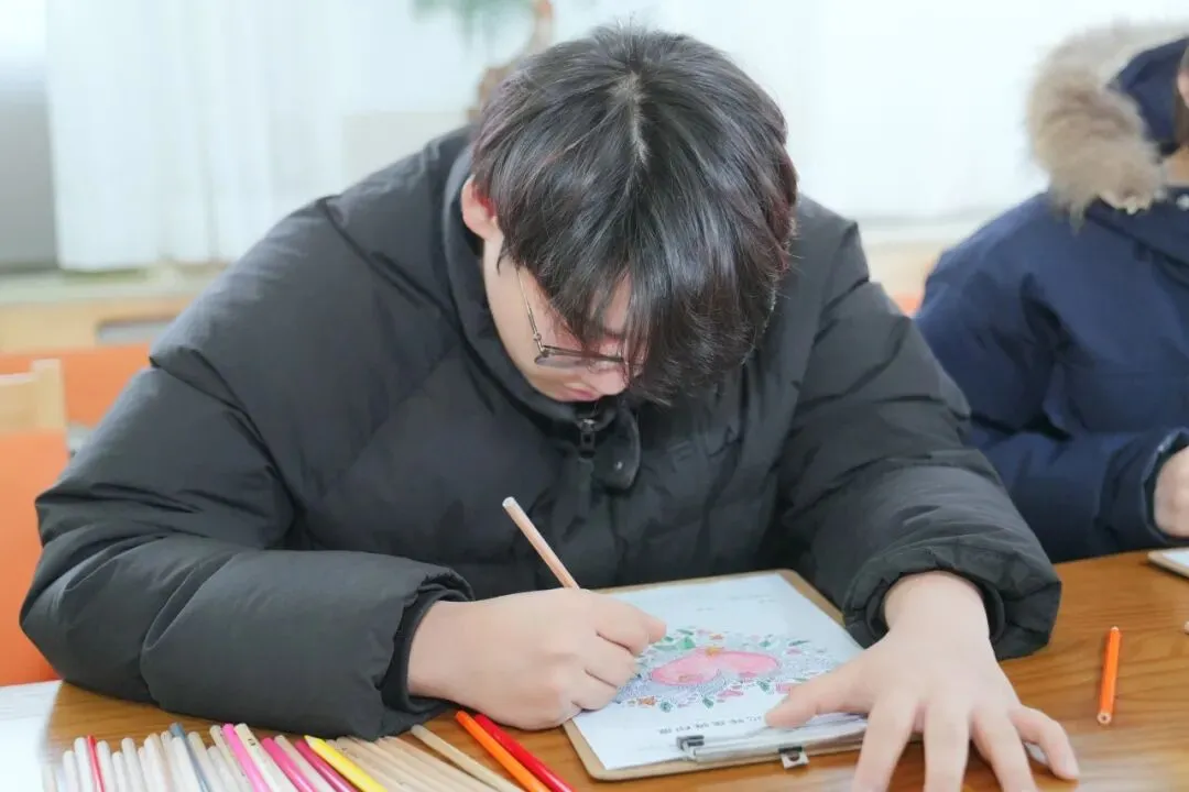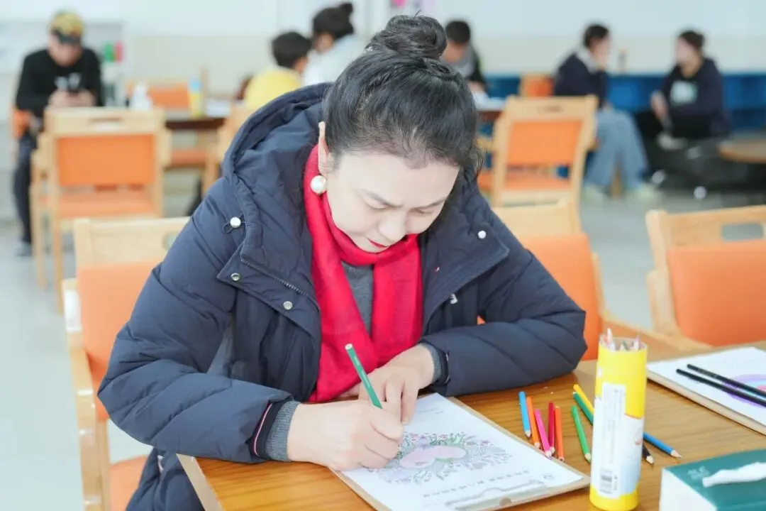 1月31日上午,青岛城阳区一家人健康管理服务中心内格外宁静。十几位参与者——其中有数位高中生与家长——静静地伏在案前,手持彩铅,在圆形的曼陀罗画纸上徐徐涂绘。窗外是生活的忙碌与喧嚣,窗内却只有笔尖摩挲纸面的声音,与渐渐放松的呼吸。