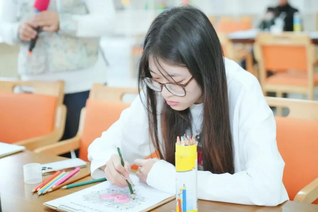 现场不乏高中生的身影。薛程伊老师很快与他们建立起信任,透过画面读懂他们的压力与期待。有家长低声感慨:“没想到一幅画,能让孩子愿意打开心扉。”