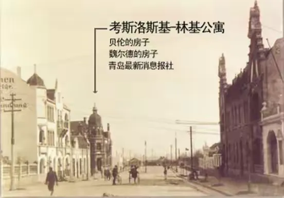 图中箭头所指的建筑是柏(贝)伦的住房和《青岛最新消息》的编辑部。(网络照片)