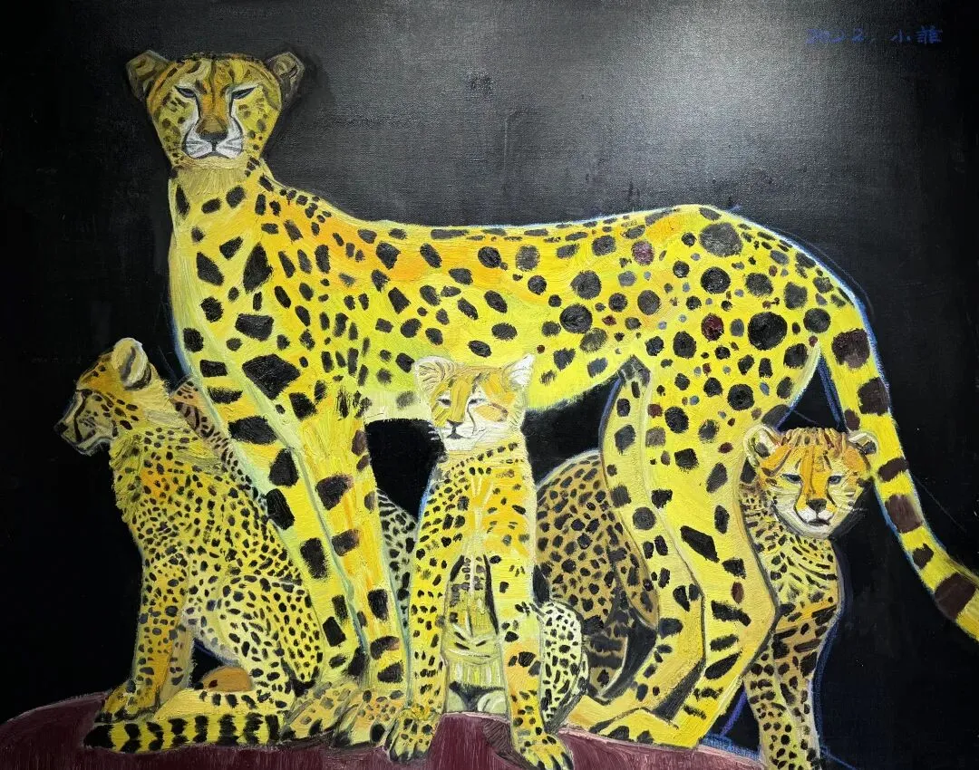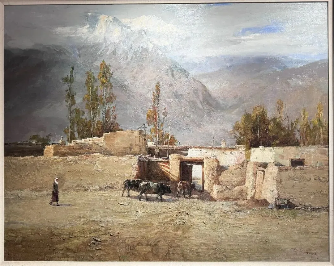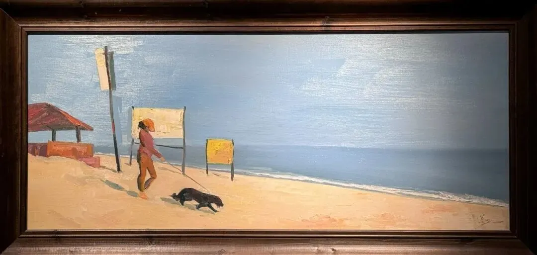 那天观展还有一个小插曲:我和朋友正在观摩展出的画作,并感慨说这位画家的手法还挺独特,然后就看到门外走进一人。我在之前看过画家的照片,所以直觉告诉我这可能就是画家本人。