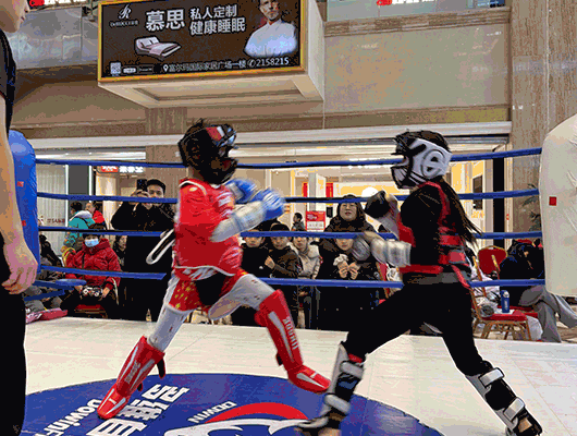 赛事正式开赛!现场氛围瞬间被推向高潮!少年们身着专业搏击装备,昂首挺胸步入赛场,眼神坚定,气场全开。