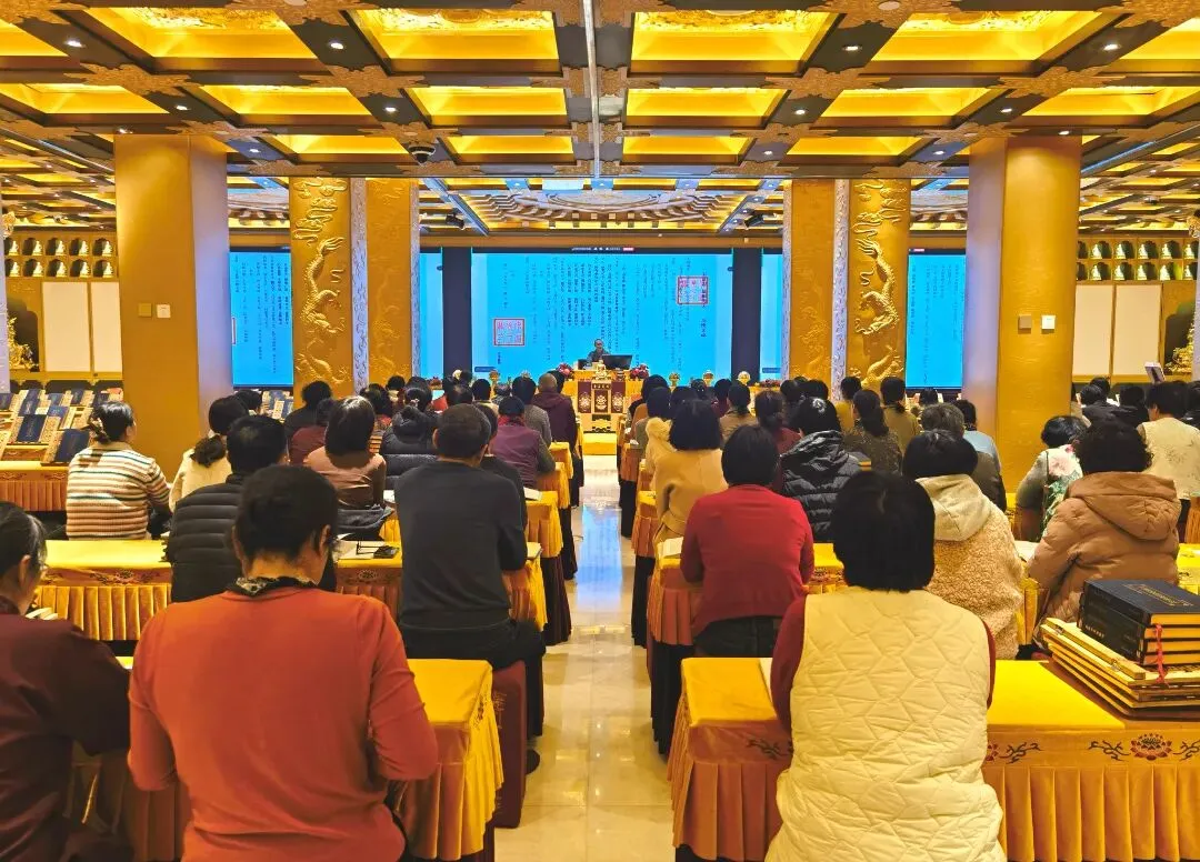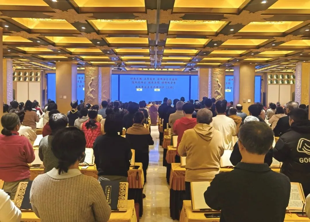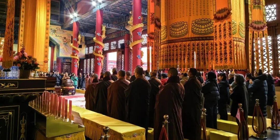 2026年1月26-28日,青岛观音寺全体僧众带领信众在般若堂举行讽诵《妙法莲华经》祈福法会,并进行超度普佛。