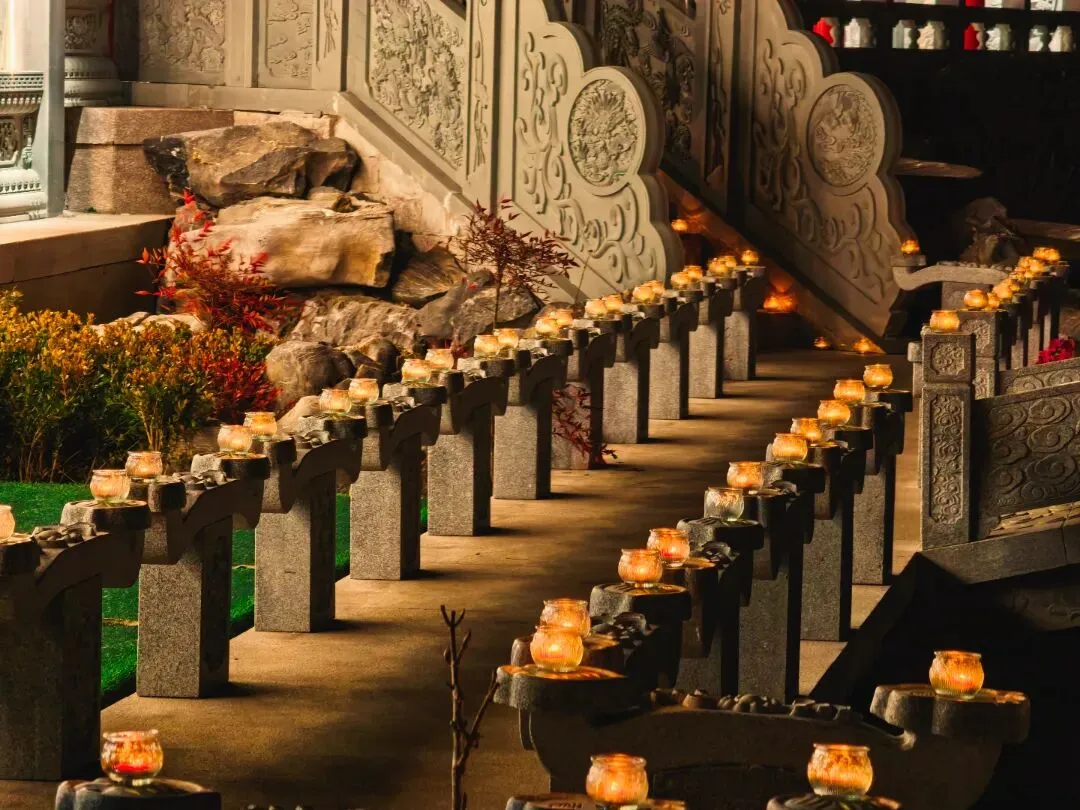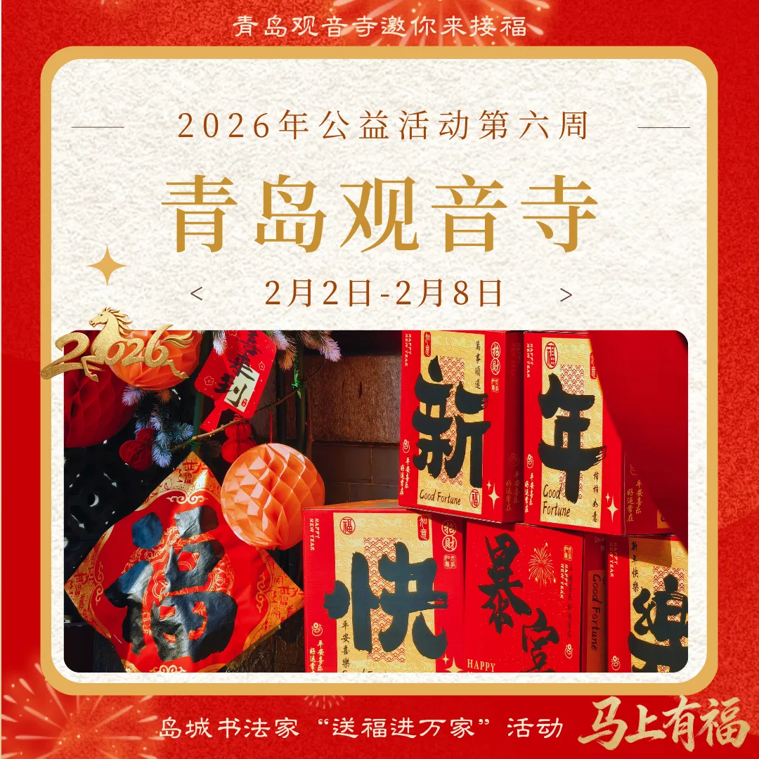 2026年1月26-28日,青岛观音寺进行供灯祈福,祈愿国泰民安、风调雨顺,众生破除无明、福慧双增。