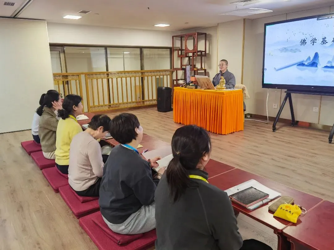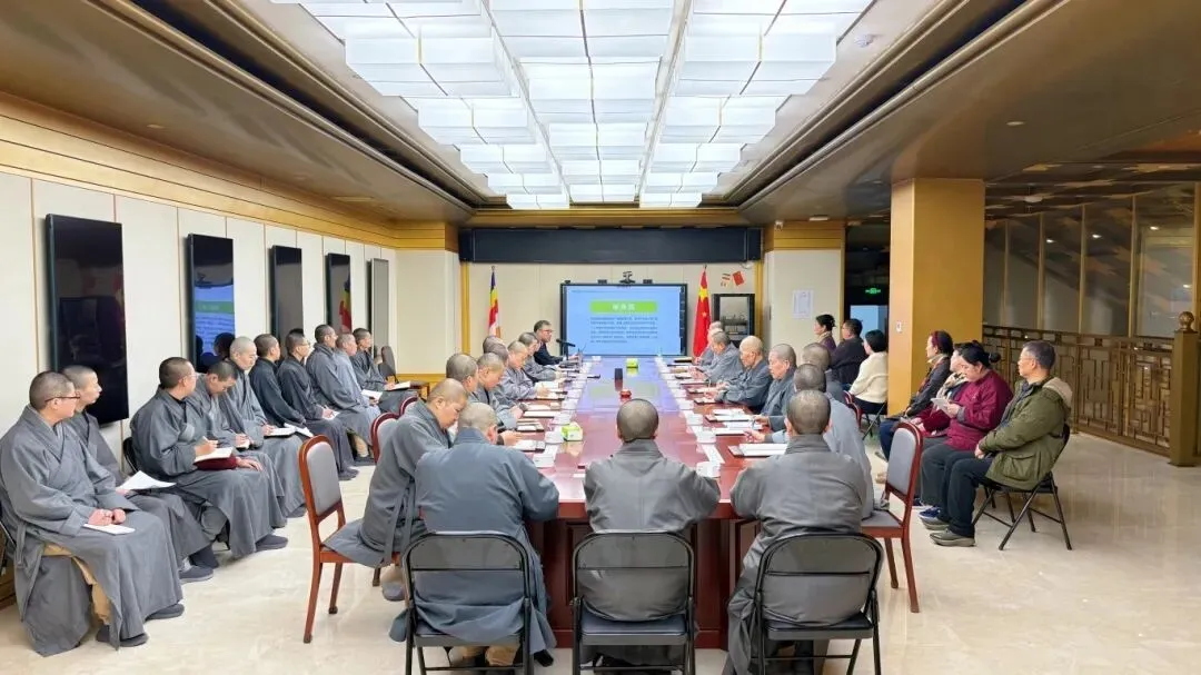 2026年1月29日,青岛观音寺全体僧众及常驻居士在般若堂二楼会议室参加青岛市佛教协会权益保护委员会普法学习。
