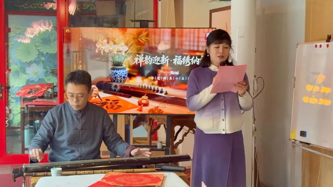 2026年1月31日,青岛观音寺在三昧书廊举办“禅韵迎新 福绣纳祥”非遗雅集公益活动,活动由青岛西海岸新区晓宁公益服务社崔晓宁主持。国际古琴学会会员徐忠强老师现场弹奏,青岛西海岸新区书法家协会副主席王昕宇联袂李明老师现场挥毫送“福”,白杨书画院院长高全霞老师执笔作画,山东省鲁绣-孙氏堆绣传承人孙展平带信众体验银杏香囊手作体验。