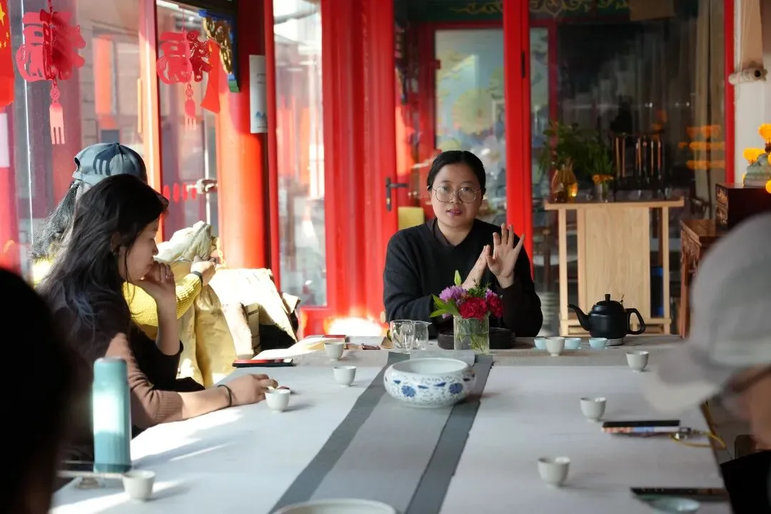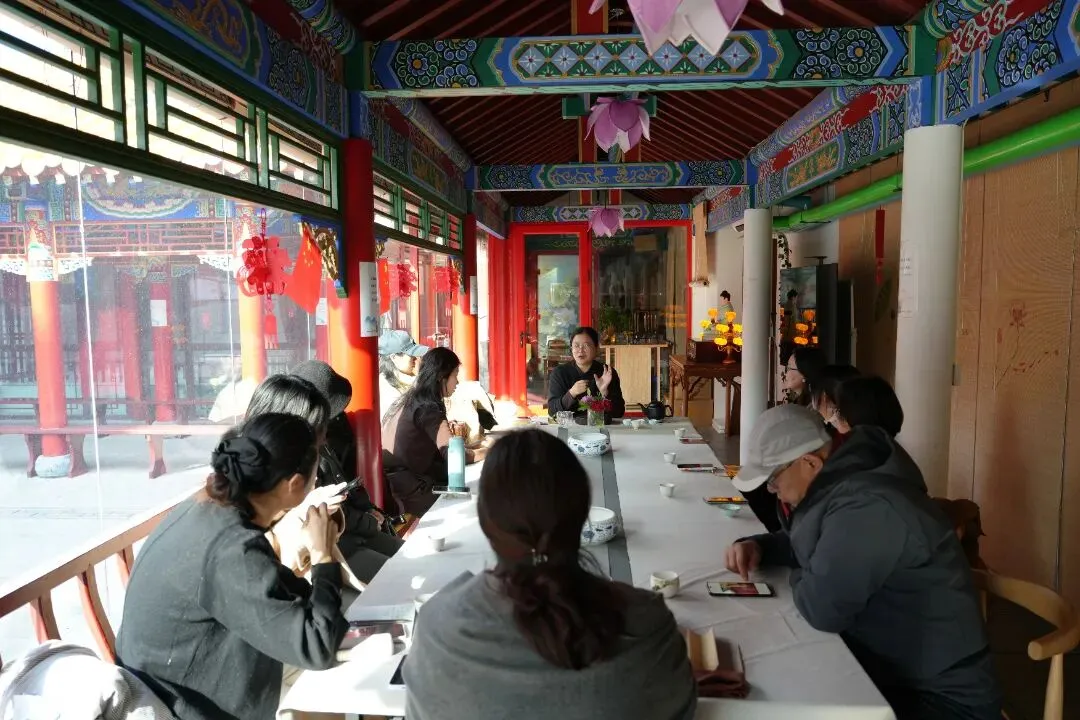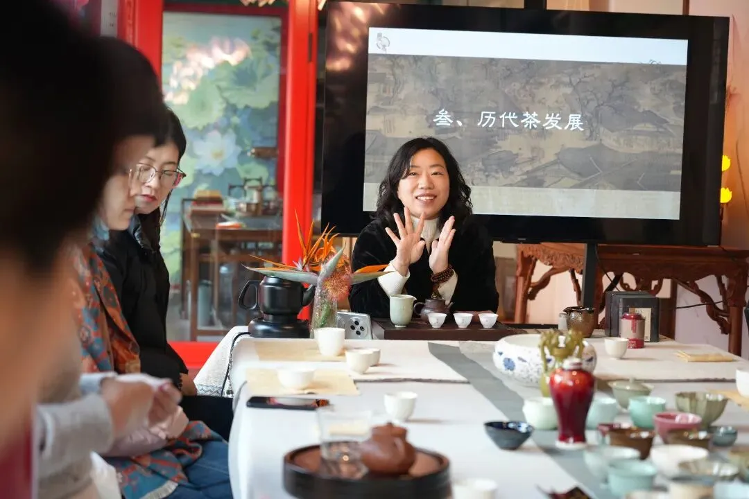 2026年2月1日,青岛市中华职教社非遗保护与传承专委会秘书长、国家茶艺技师、国家评茶技师、非遗宋代点茶传承人邱娜老师在三昧书廊进行宋代点茶公益课。