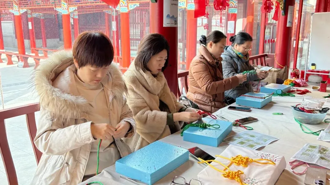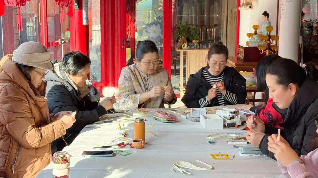 2026年1月30日,青岛市民间艺人、绳结艺术专业指导老师江丽娜在三昧书廊开展绳结公益课。