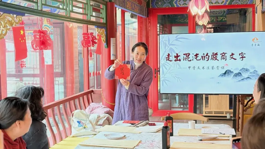 2026年1月29日,中国硬笔书法家协会会员、全国规范字书写注册教师、“羲之艺术杯”中国大书法第六届大赛成人组一等奖获得者李亚玲老师在三昧书廊开设甲骨文书法鉴赏公益课:走出混沌的殷商文字。
