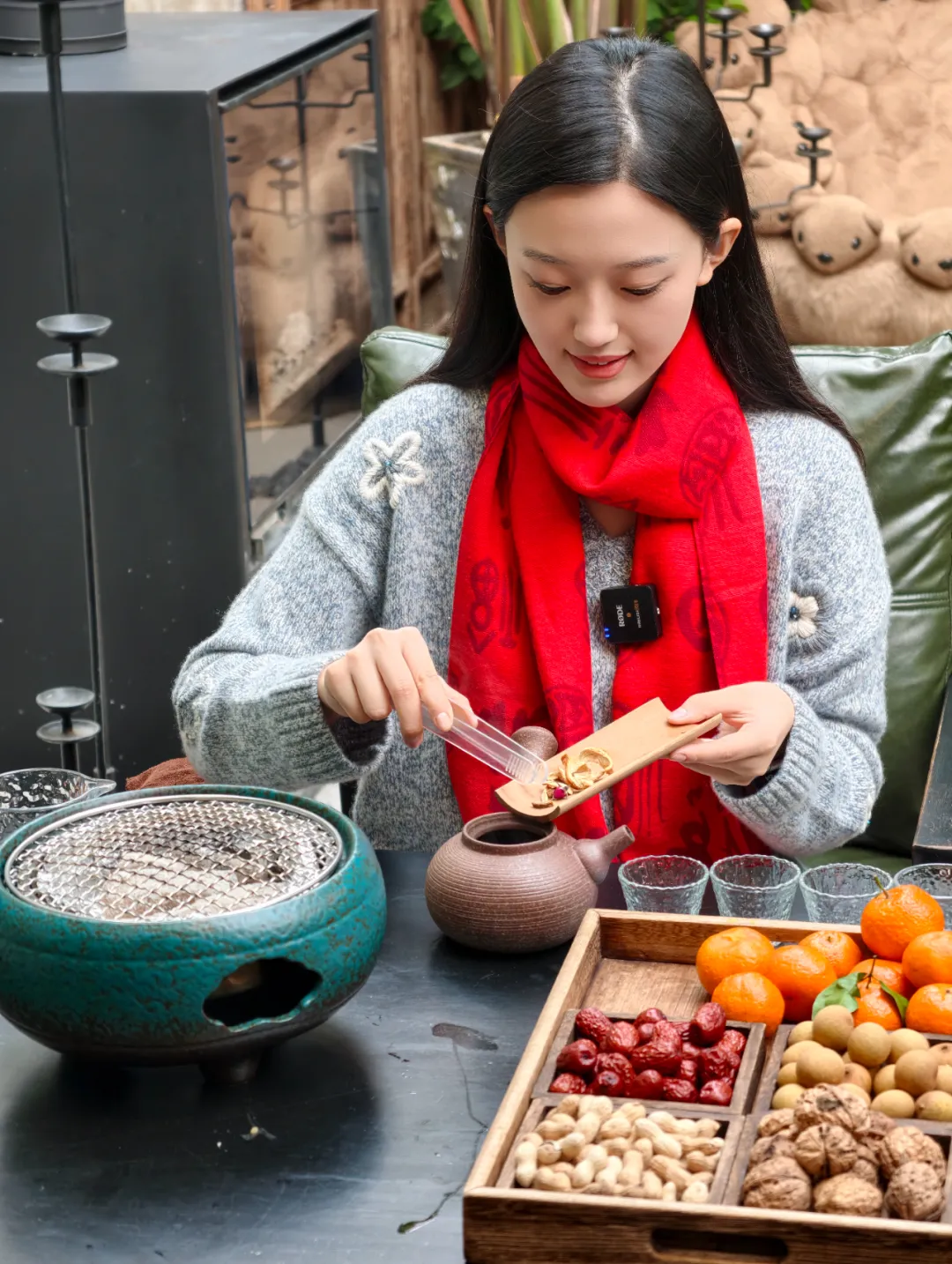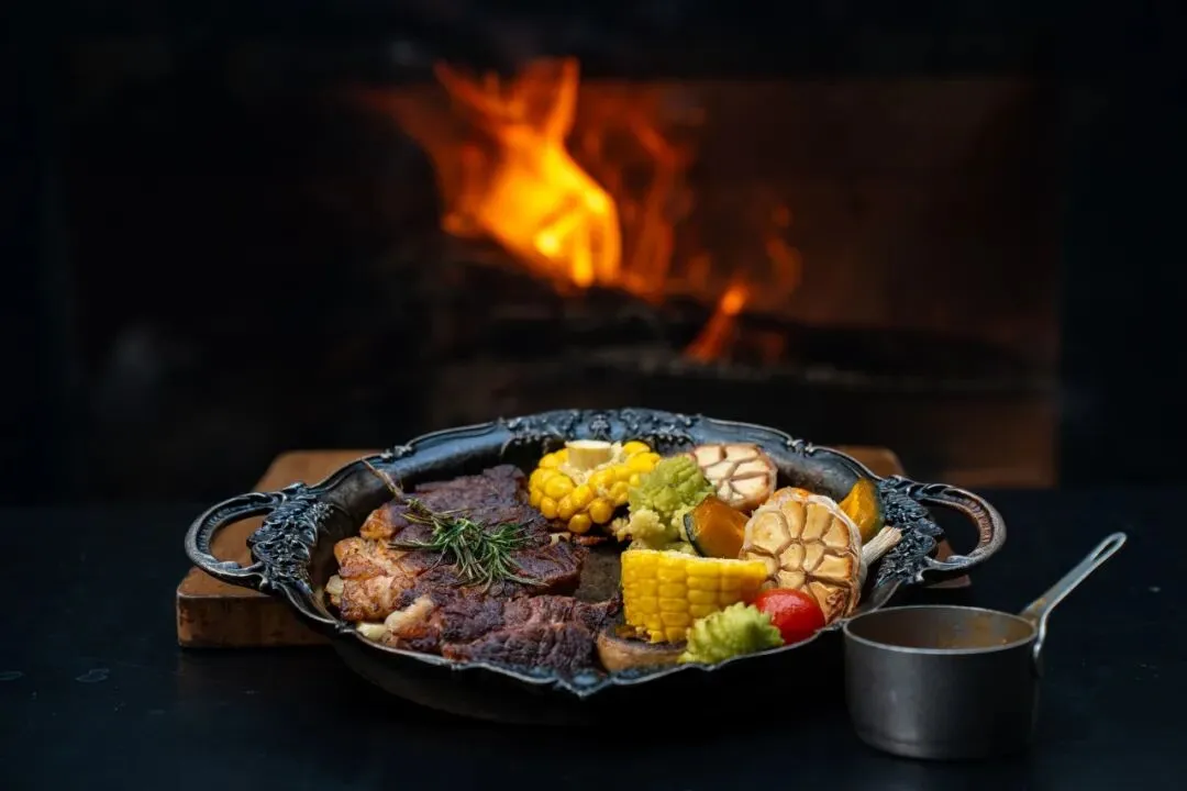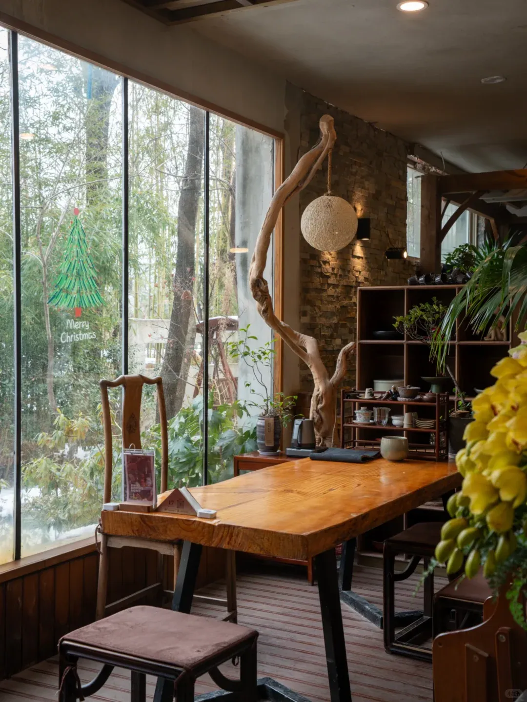 用餐区被绿植环绕,围炉煮茶、西式简餐、咖啡饮品应有尽有。