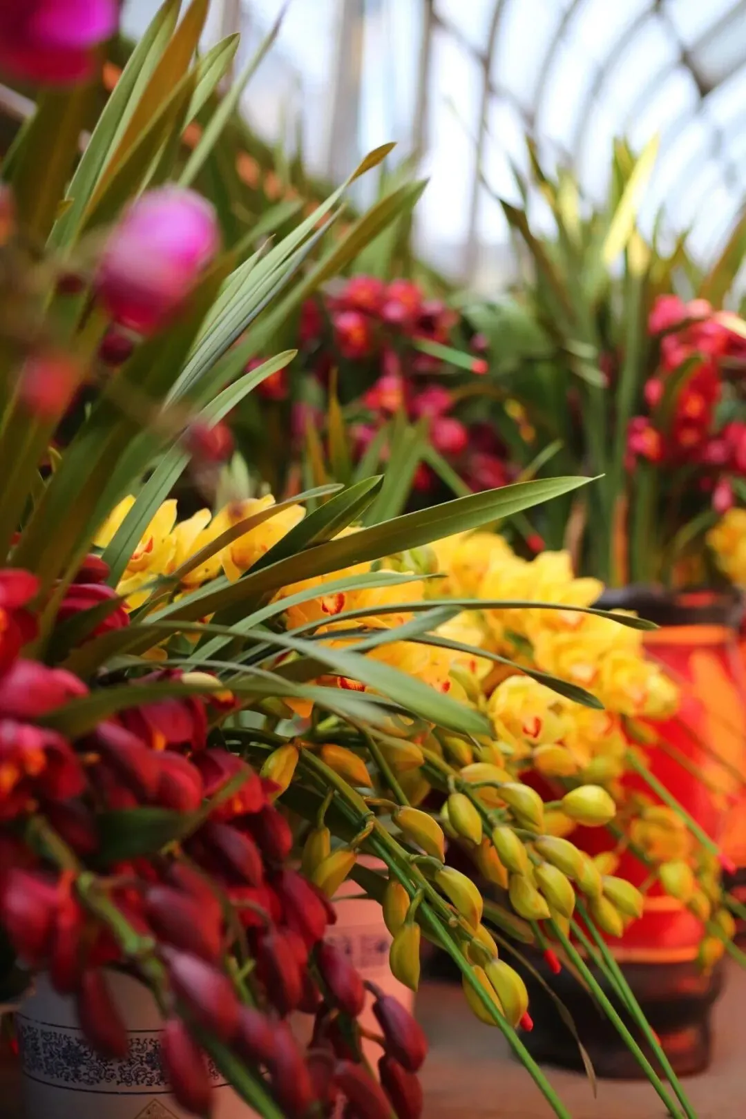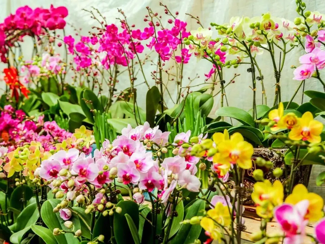 蝴蝶兰、杜鹃、大花蕙兰……各类花卉错落有致,色彩层层叠叠,仿佛提前把春天请到了眼前。