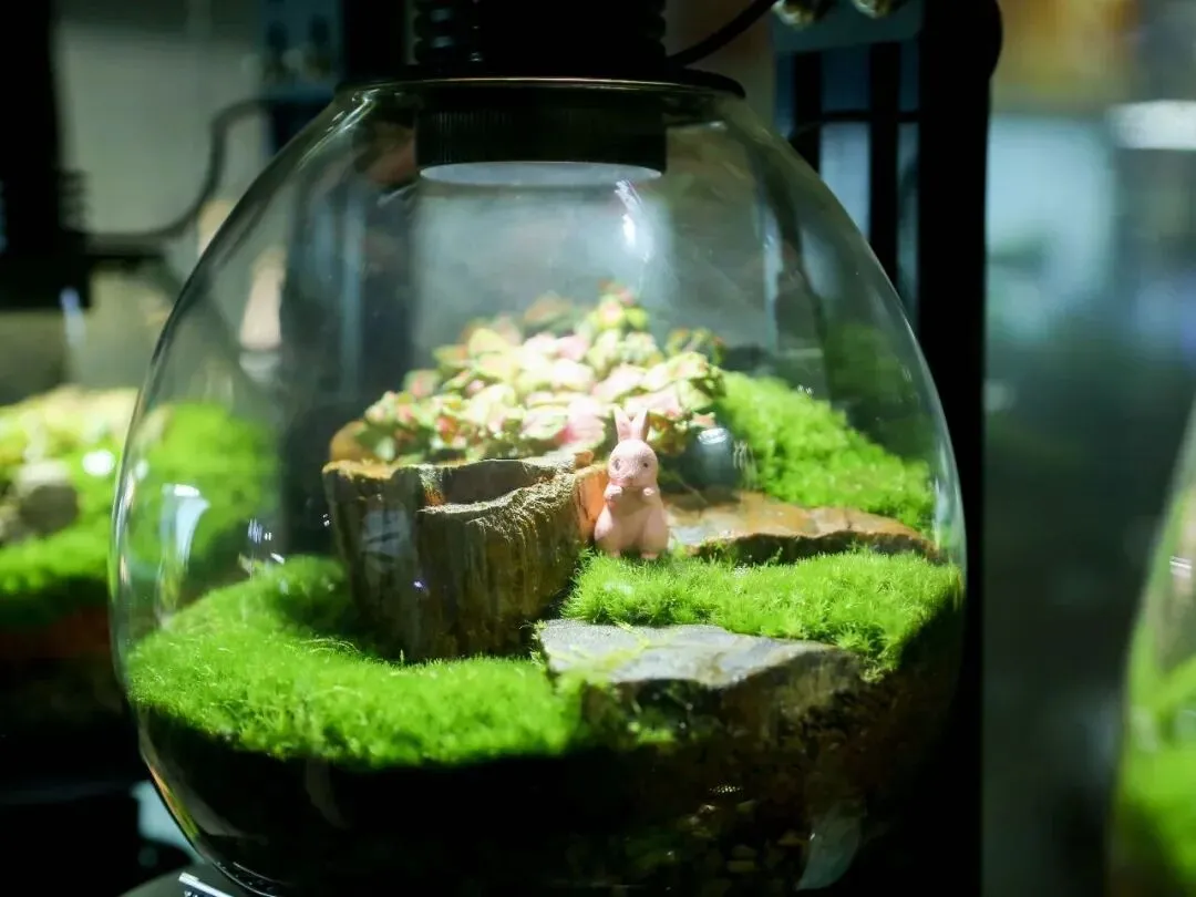 转到水族区,画风立刻切换。当鱼缸灯光亮起,各类观赏鱼在造景间游弋,像个小小的海底世界,既梦幻又有趣。