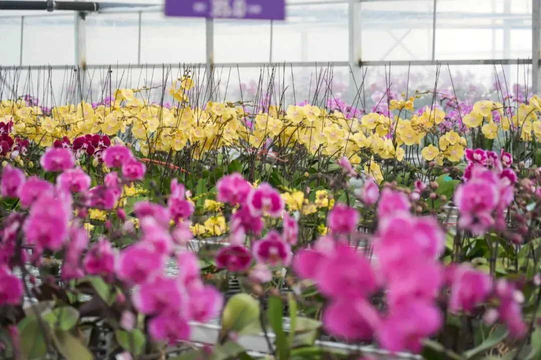 走进花卉区,五彩蝴蝶兰、鲜亮的大花蕙兰和北美冬青随处可见,花瓣饱满、水灵灵的,每一盆都让人忍不住想抱回家。