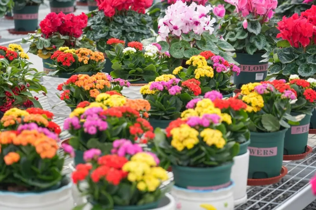 长寿花、富贵菊、绣球、玫瑰等鲜切花同样不少,新年的氛围在这里真的被拉满了!