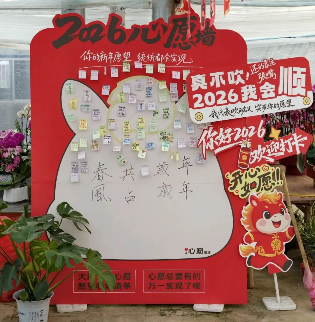 除了花,这里还有一面许愿墙。买花的同时写下新年的小心愿,也算是逛花市的一个小仪式。