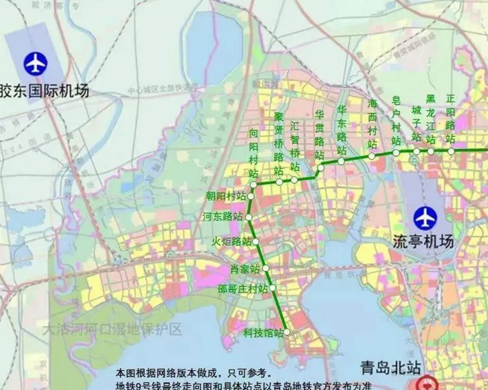未来9 号线全线贯通,横穿城阳全域,西接棘洪滩、高新区,东连惜福镇、崂山,打造城阳 “东西金腰带”,串联多个居住与产业组团,填补城阳东西向轨道空白。