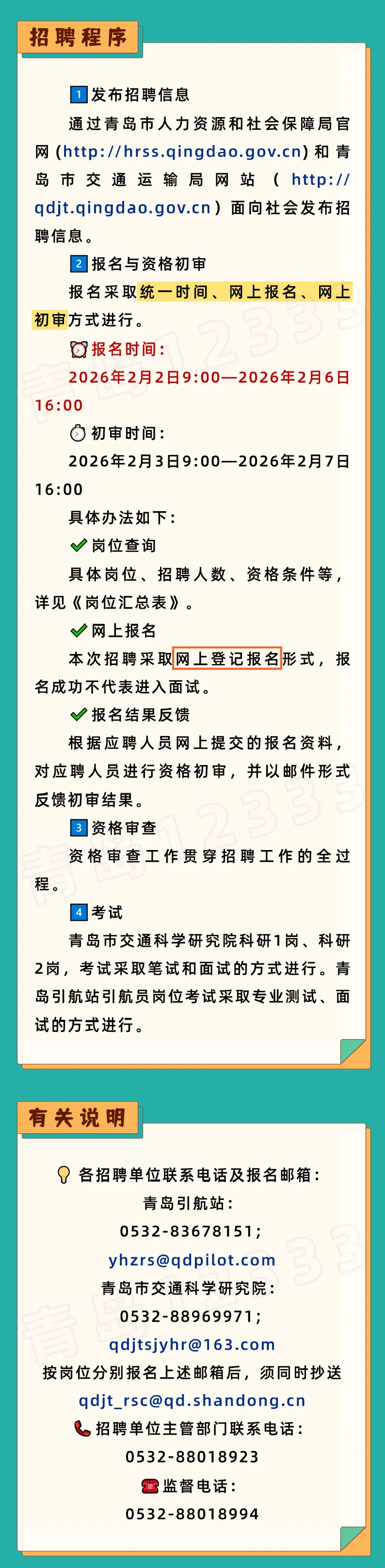 >2026年青岛市交通运输局所属部分事业单位公开招聘工作人员公告