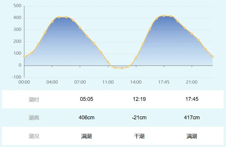 注意干潮(退潮至最低点)时间,11:38(水位最低)和23:59后开始涨潮,需及时关注潮水变化,不要深入太远,留意潮水回涨的时间及时返回岸边,避免被困。青岛潮汐表2026.2.3(大潮)