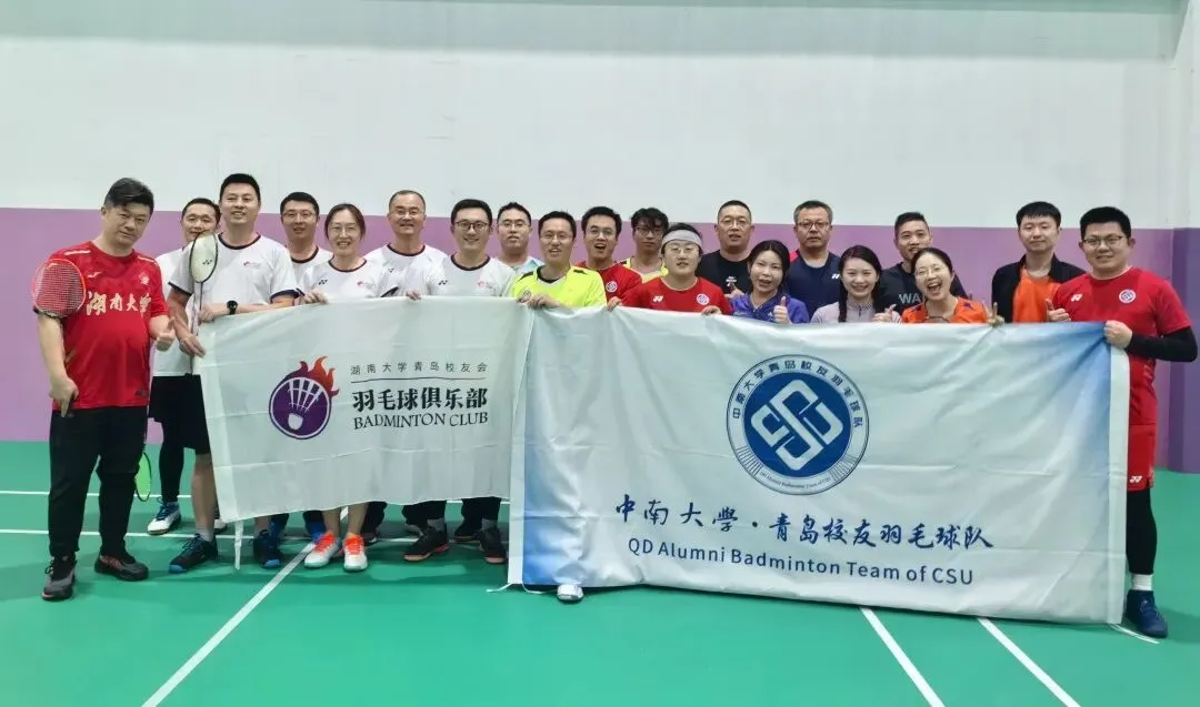 岳麓文脉远,黄海情谊长。为热烈庆祝中南大学青岛校友会成立,增进兄弟院校校友间的情谊联结,2026年2月1日,湖南大学青岛校友会羽毛球俱乐部与中南大学青岛校友羽毛球队,齐聚赛场,开展了一场精彩纷呈的羽毛球联谊活动,以球会友,共叙湘情。天津大学、西北大学、重庆大学等高校青岛校友羽毛球领队亦到场同庆。