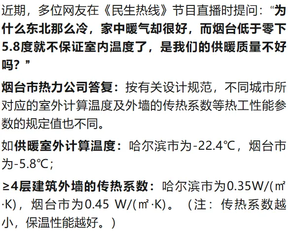 >烟台室外低于-5.8℃,就不保证室内温度了