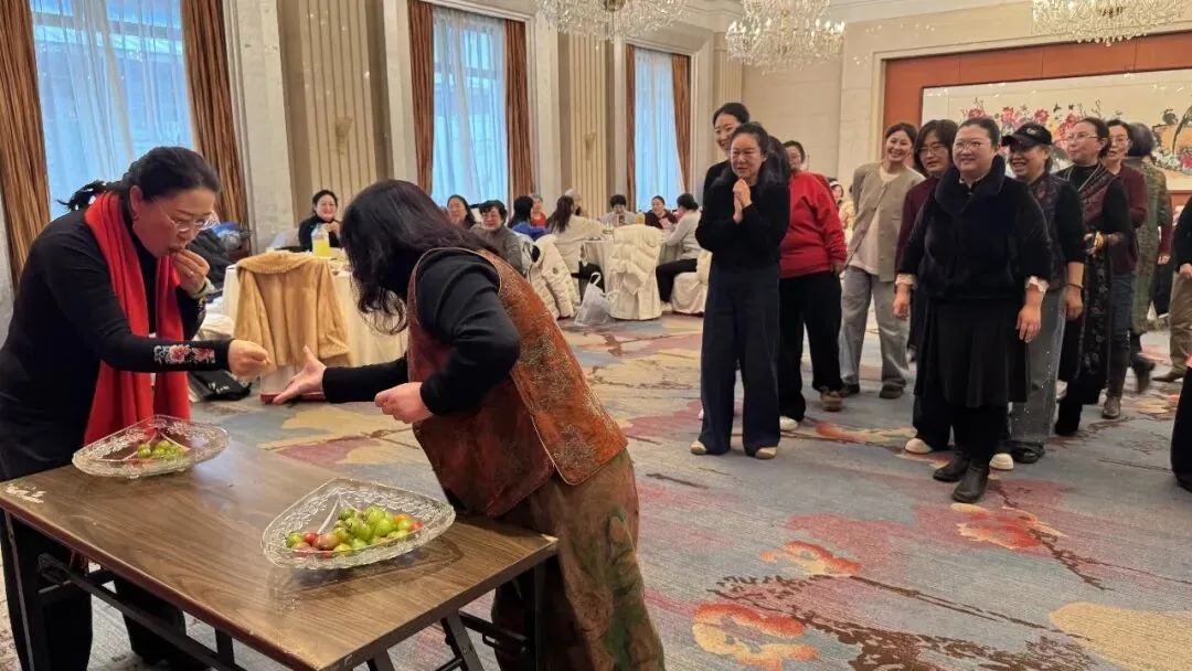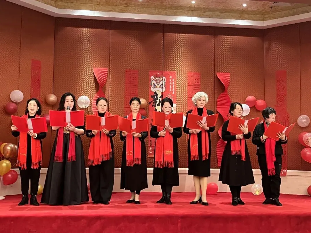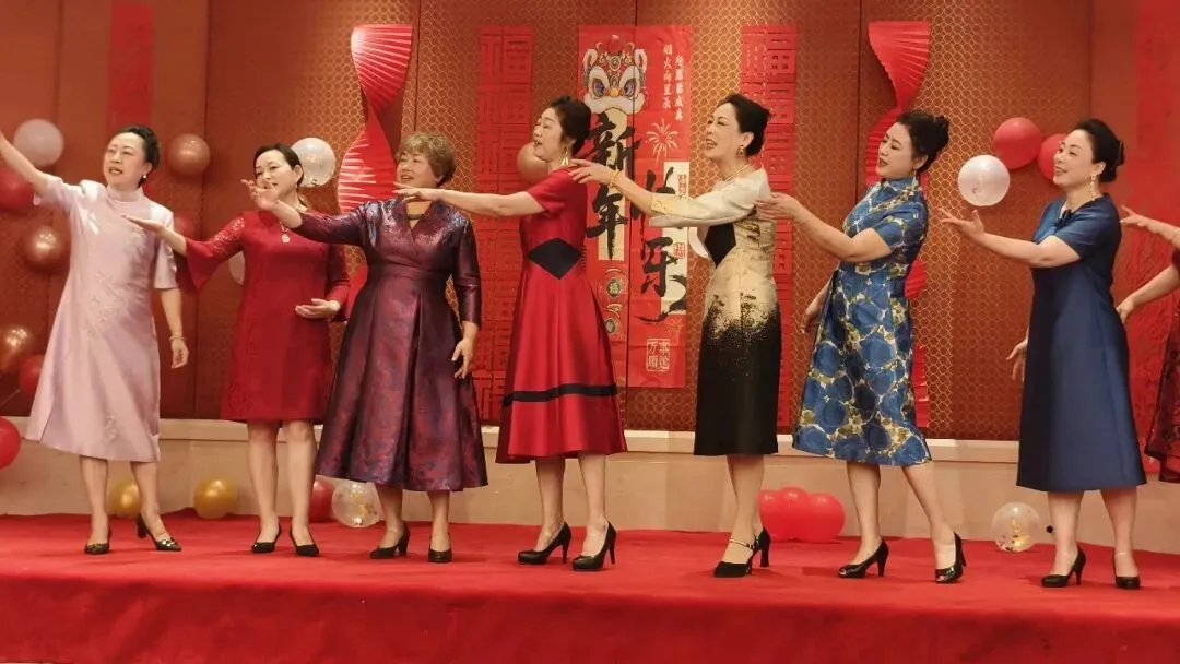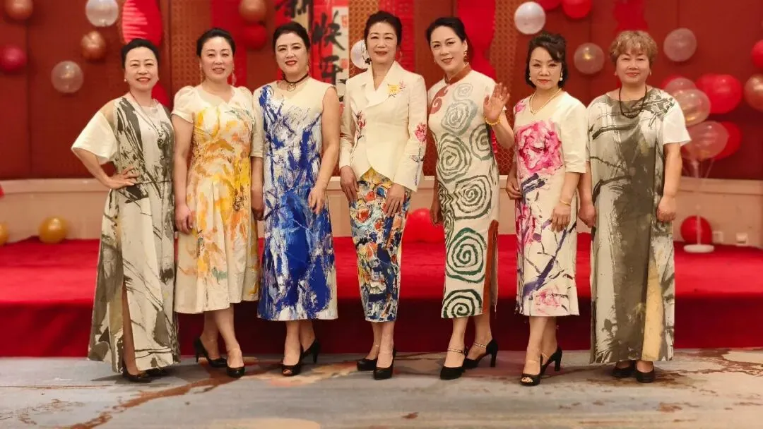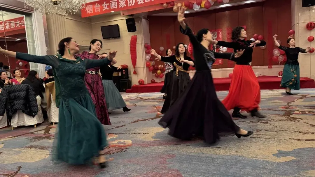 活动不仅是对过往的深情回望,更是会员们绽放多元才华的精彩舞台。一段欢快灵动、激情四射的舞蹈《天竺少女》表演拉开序幕,小合唱青春洋溢的《春之歌》情感真挚、声声动人;诗词朗诵《大雪中的中国》大气磅礴,展现新时代党员风貌;还有富有异域风情的新疆舞和藏族舞,现代手绘服装走秀——《移动的画廊》,充分展现了女画家们玲珑心思,她们把色彩和剪裁完美结合,使衣服变成了独一无二的艺术品。而《画里扇香•步步生花》是将古典风韵穿在身上、画在扇上,完美演绎了女画家古典优雅的气质和风韵;语言类节目“三句半”以诙谐幽默的台词,道出了艺术创作中的苦与乐,引发阵阵会心笑声;古琴曲《半山听雨》悠扬清越、大提琴的深沉与萨克斯的悠扬相继奏响,中西合璧,旋律交融,充分展现了女画家群体深厚的艺术素养与丰富多彩的精神世界。台上精彩纷呈,台下互动频繁,掌声与喝彩此起彼伏。为活跃气氛,年会还精心设计多轮抽奖环节,一份份精心准备的礼物将惊喜与欢乐送至会员手中,现场高潮迭起。整场活动始终沉浸在欢快、融洽的氛围里,会员们或切磋画艺或畅叙友情,在笑语中共度了一段美好而难忘的时光。最后女画家们在华尔兹经典的旋律中翩翩起舞,在她们优雅旋转中年会画上了圆满句号。