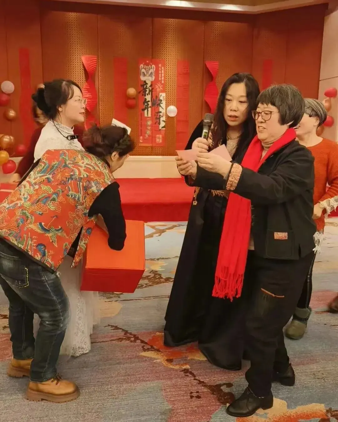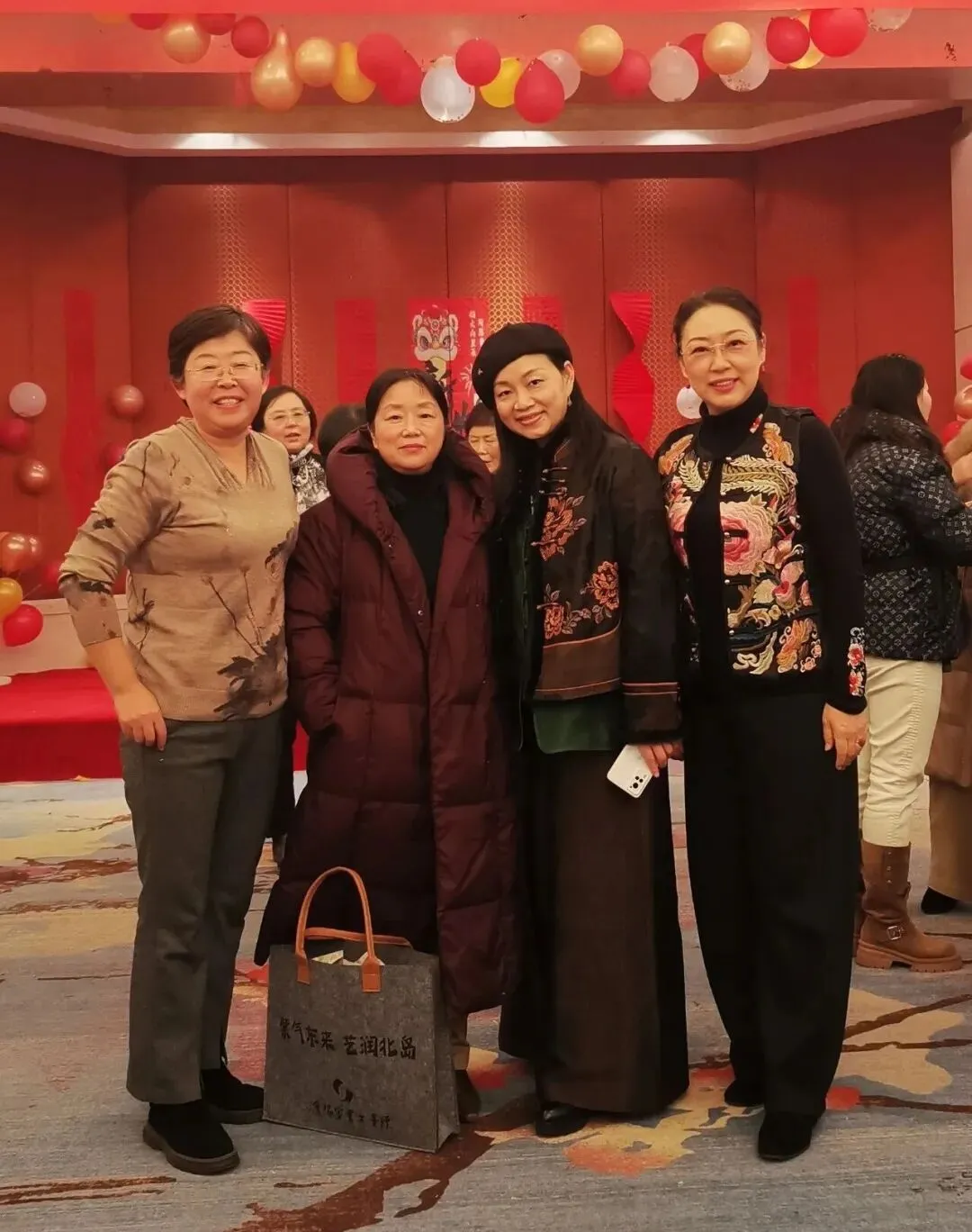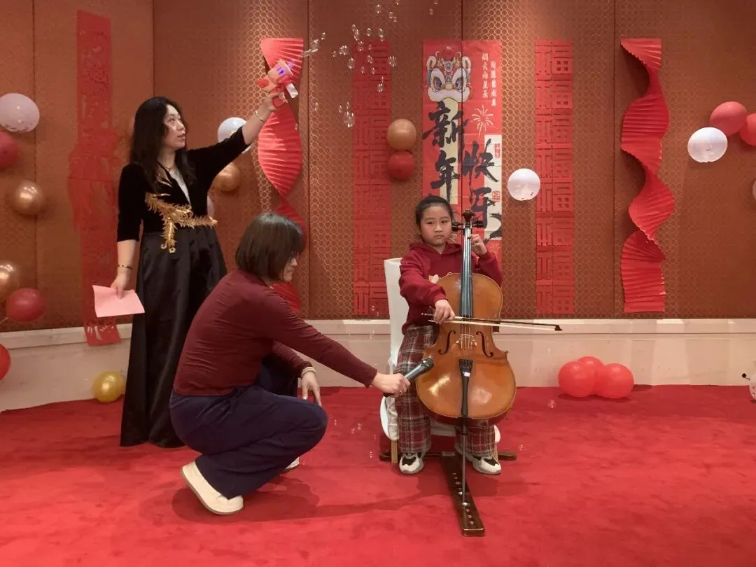 活动不仅是对过往的深情回望,更是会员们绽放多元才华的精彩舞台。一段欢快灵动、激情四射的舞蹈《天竺少女》表演拉开序幕,小合唱青春洋溢的《春之歌》情感真挚、声声动人;诗词朗诵《大雪中的中国》大气磅礴,展现新时代党员风貌;还有富有异域风情的新疆舞和藏族舞,现代手绘服装走秀——《移动的画廊》,充分展现了女画家们玲珑心思,她们把色彩和剪裁完美结合,使衣服变成了独一无二的艺术品。而《画里扇香•步步生花》是将古典风韵穿在身上、画在扇上,完美演绎了女画家古典优雅的气质和风韵;语言类节目“三句半”以诙谐幽默的台词,道出了艺术创作中的苦与乐,引发阵阵会心笑声;古琴曲《半山听雨》悠扬清越、大提琴的深沉与萨克斯的悠扬相继奏响,中西合璧,旋律交融,充分展现了女画家群体深厚的艺术素养与丰富多彩的精神世界。台上精彩纷呈,台下互动频繁,掌声与喝彩此起彼伏。为活跃气氛,年会还精心设计多轮抽奖环节,一份份精心准备的礼物将惊喜与欢乐送至会员手中,现场高潮迭起。整场活动始终沉浸在欢快、融洽的氛围里,会员们或切磋画艺或畅叙友情,在笑语中共度了一段美好而难忘的时光。最后女画家们在华尔兹经典的旋律中翩翩起舞,在她们优雅旋转中年会画上了圆满句号。