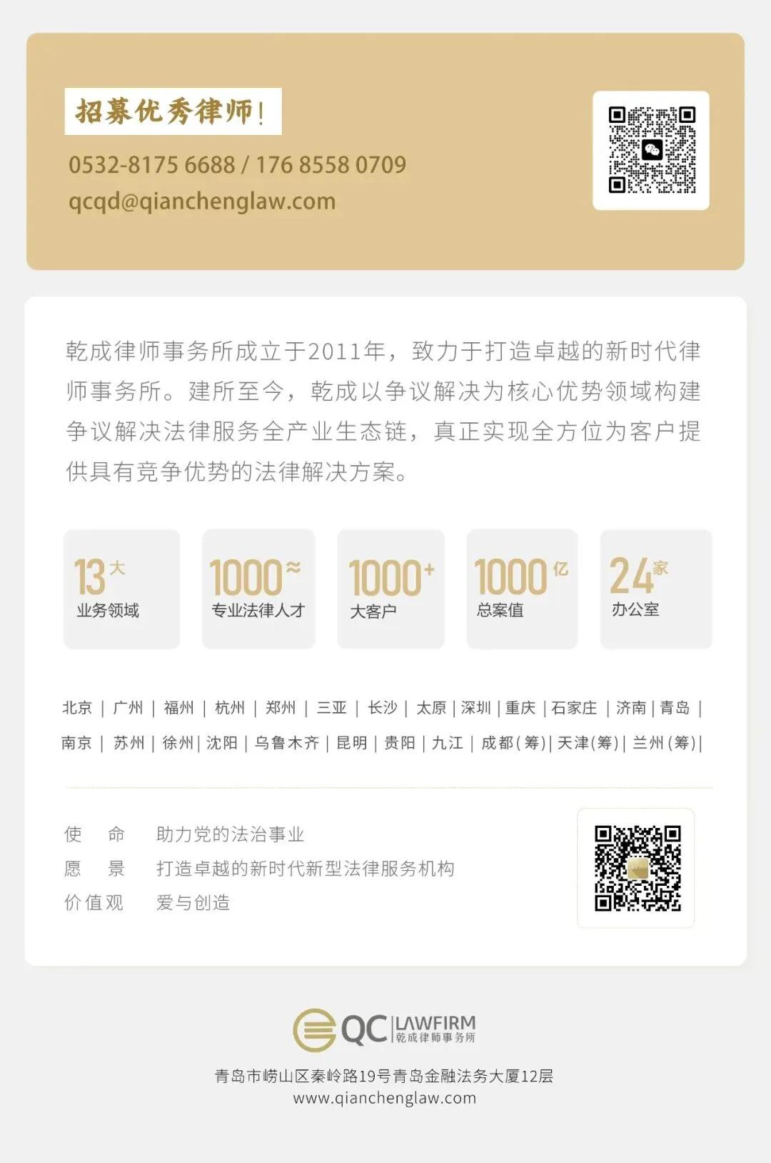 2025,我们躬身耕耘,步履坚实;2026,我们聚势向前,共赴山海。北京乾成(青岛)律师事务所将继续秉承“长期主义、专业为本”的理念,与所有同行者一起,书写更加温暖的法治故事,奔赴更加辽阔的职业星辰。