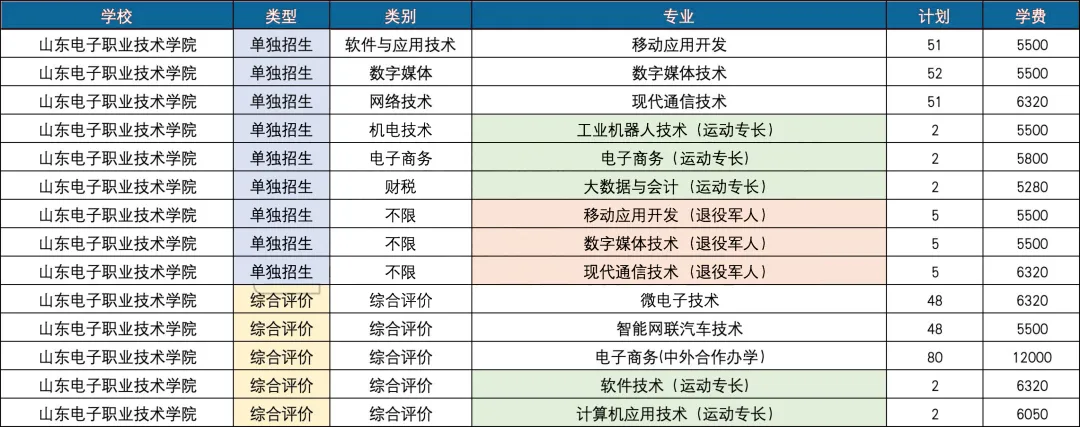 >烟台职业、山东电子、泰山职业技术学院2026年单招综评招生计划