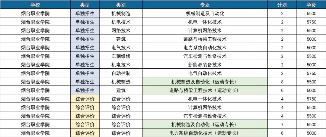 烟台职业学院 2026年单招综评拟招生专业计划公布!