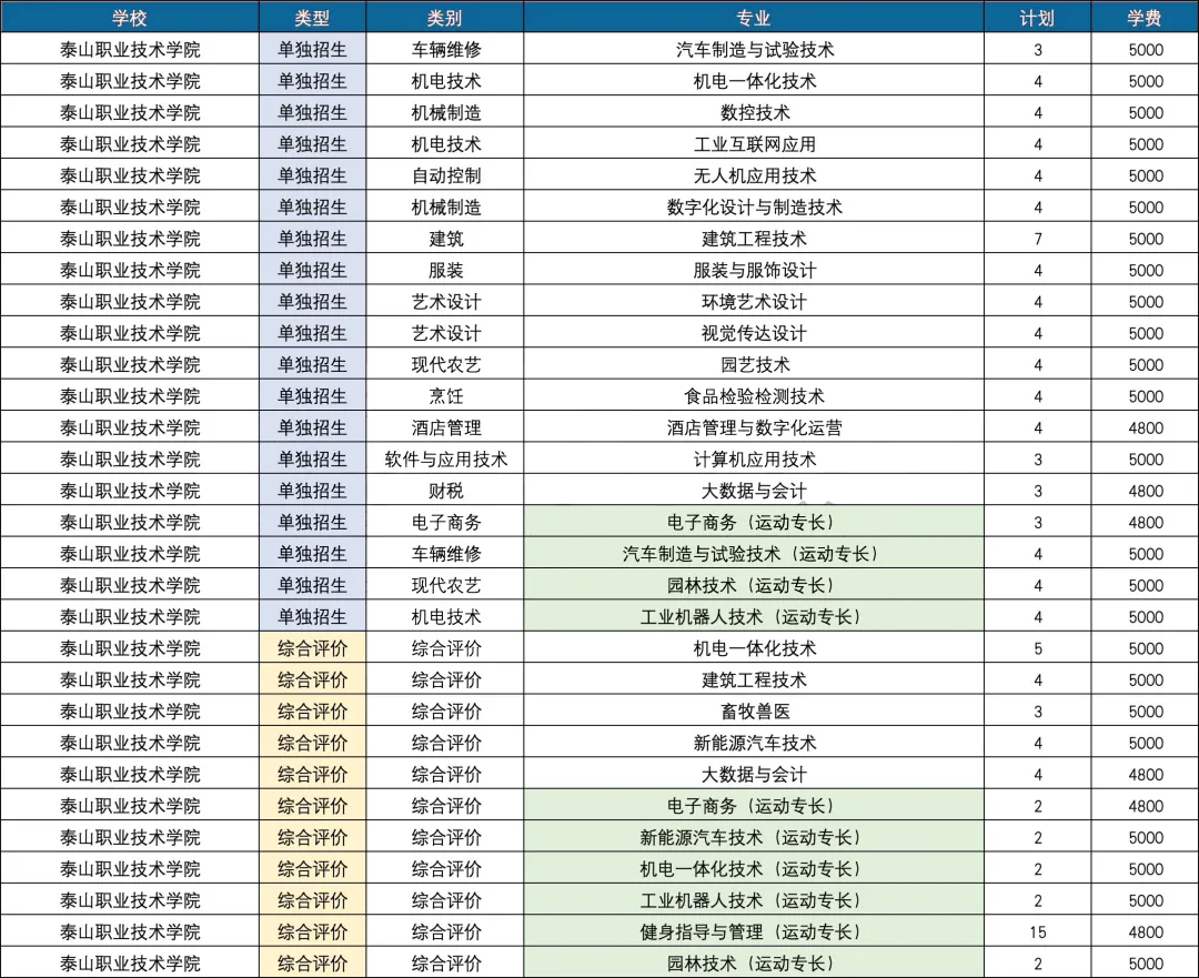 烟台职业、山东电子、泰山职业技术学院2026年单招综评招生计划